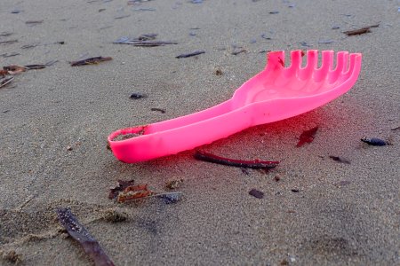 | Πλαστική τσουγκράνα στην άμμο, Άλιμος, Αττική |