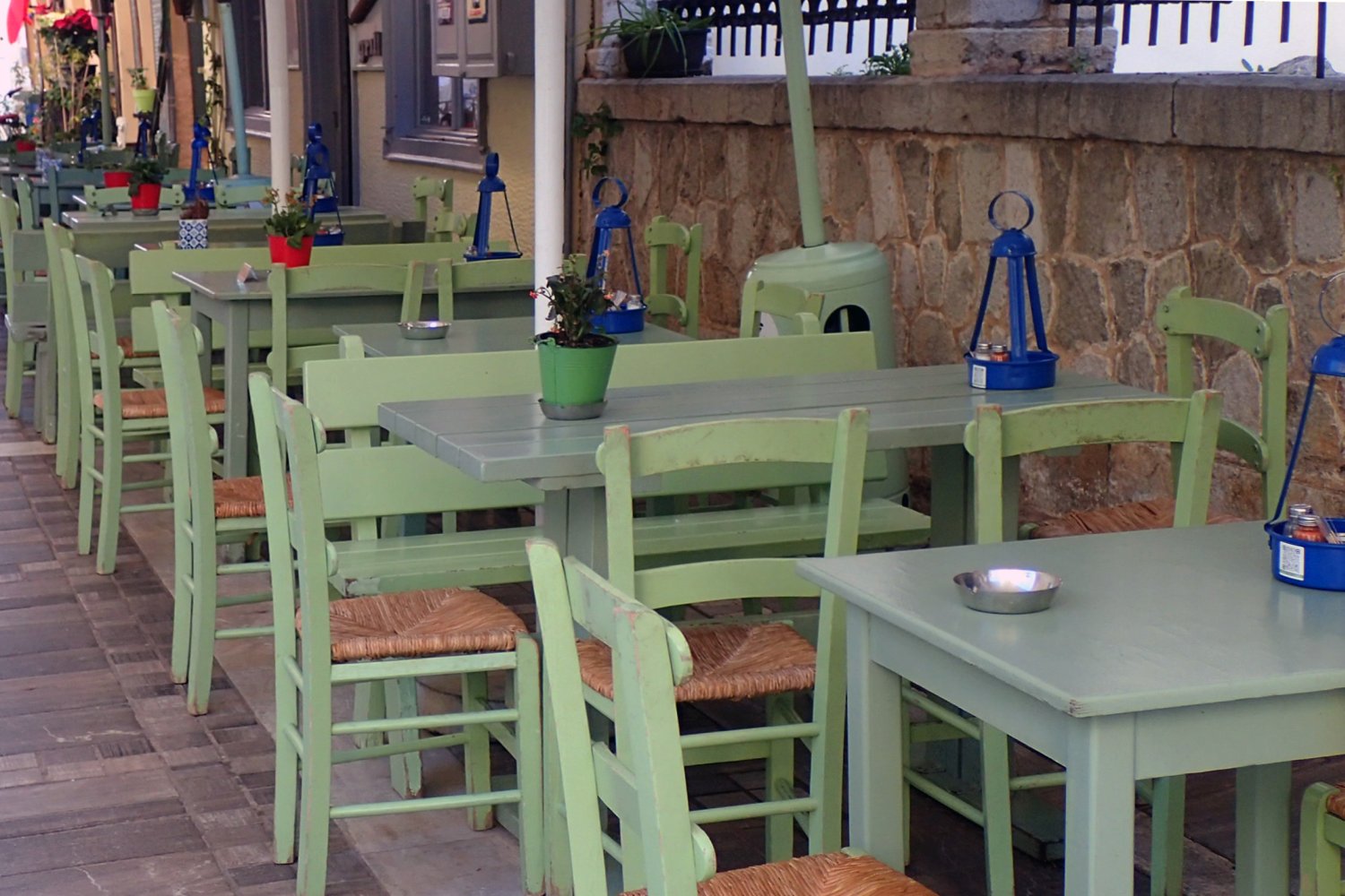 Ξύλινα τραπεζάκια σε πεζόδρομο