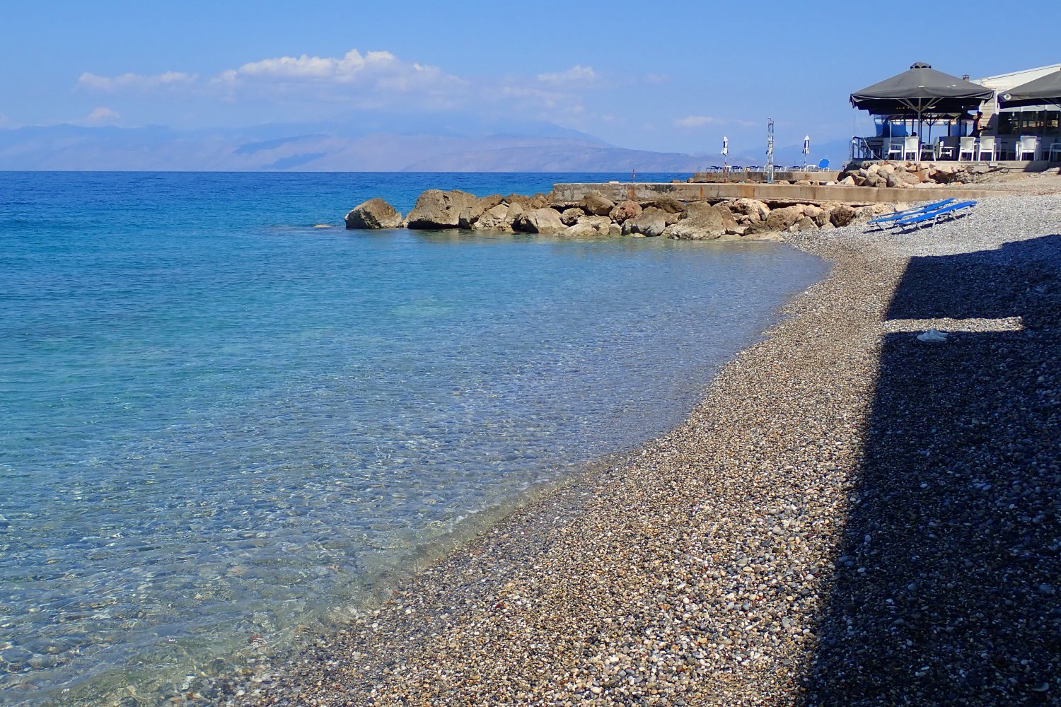 Η παραλία είναι κυρίως με βότσαλο, όπως οι περισσότερες στον Κορινθιακό κόλπο. Τα νερά είναι καθαρά, βαθαίνουν σχετικά γρήγορα και έχουν διαύγεια που ευνοεί το κολύμπι και το snorkeling. Εκτείνεται μπροστά σε όλο το μήκος του οικισμού. Η πρόσβαση είναι εύκολη με αυτοκίνητο από την παλιά εθνική οδό Κορίνθου–Πατρών. Υπάρχει επίσης σταθμός του προαστιακού σιδηρόδρομου σε μικρή απόσταση, κάτι που διευκολύνει την έλευση επισκεπτών χωρίς αυτοκίνητο.
