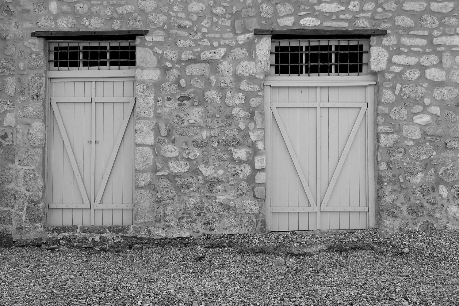 Ξύλινες πόρτες σε πέτρινο τοίχο
