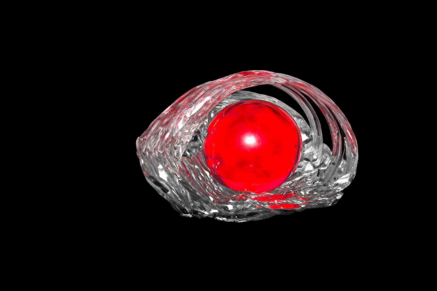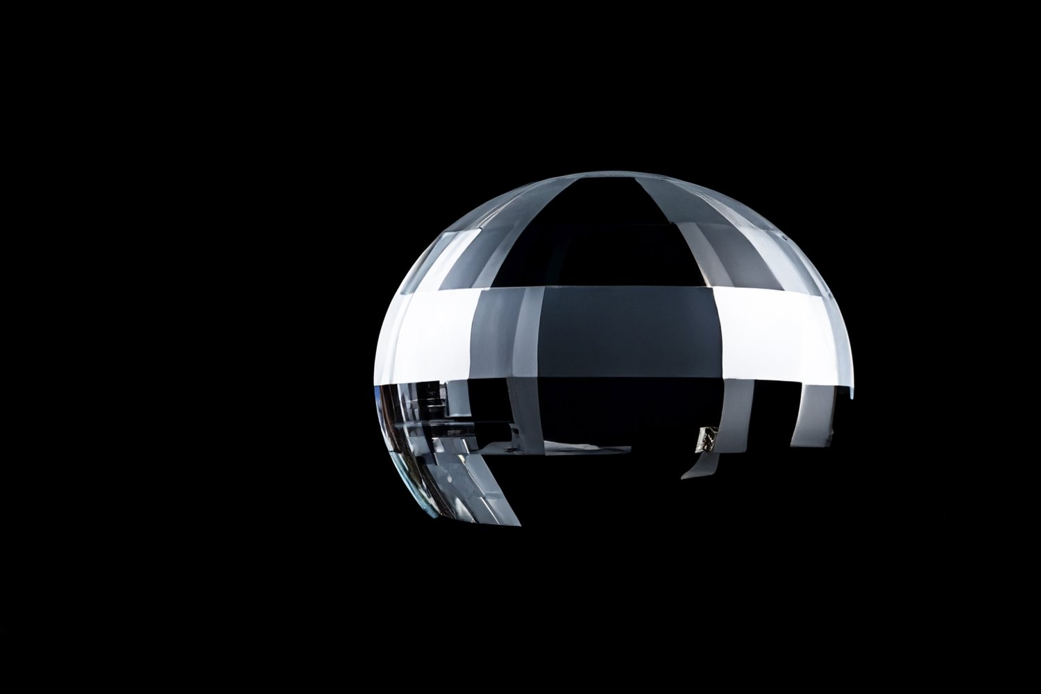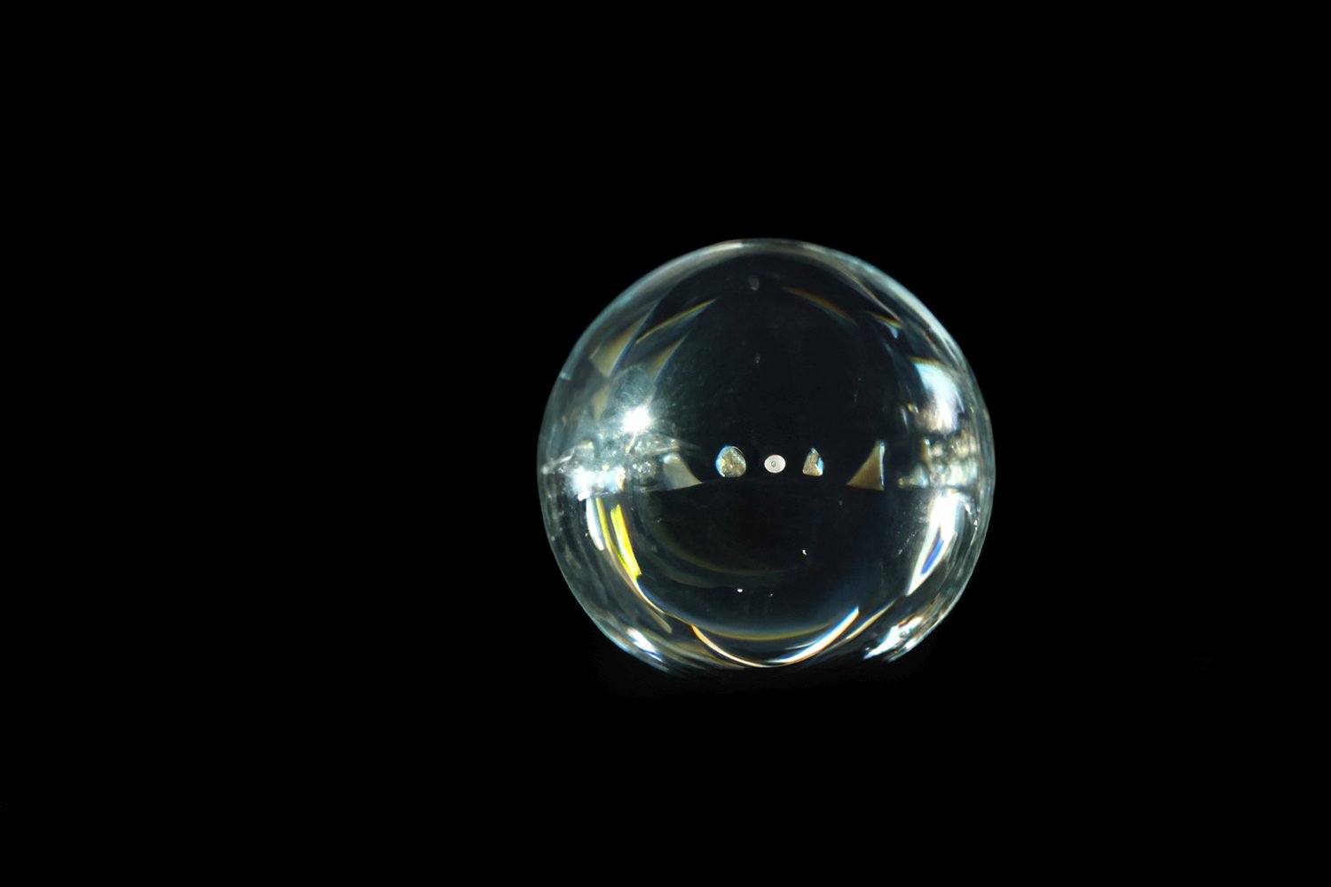 Η γεωμετρία της σφαίρας λειτουργεί ως σταθερό σημείο μέσα στην ασταθή απεικόνιση. Το σφαιρικό σχήμα απορροφά και διαθλά το φως, δημιουργώντας πολλαπλές εκδοχές του ίδιου αντικειμένου. Η απώλεια της σταθερής οπτικής γωνίας οδηγεί τον θεατή σε εμπειρία μετατόπισης, όπου η πραγματικότητα εμφανίζεται ρευστή και ανοιχτή σε επανερμηνείες. Η ατέλεια των επιφανειών, οι μικρές ασυνέχειες και οι διαφοροποιήσεις της διαφάνειας αποτελούν μέρος της σύνθεσης, αποκαλύπτοντας τη σχέση ανάμεσα στη μορφή και στη φαντασία.