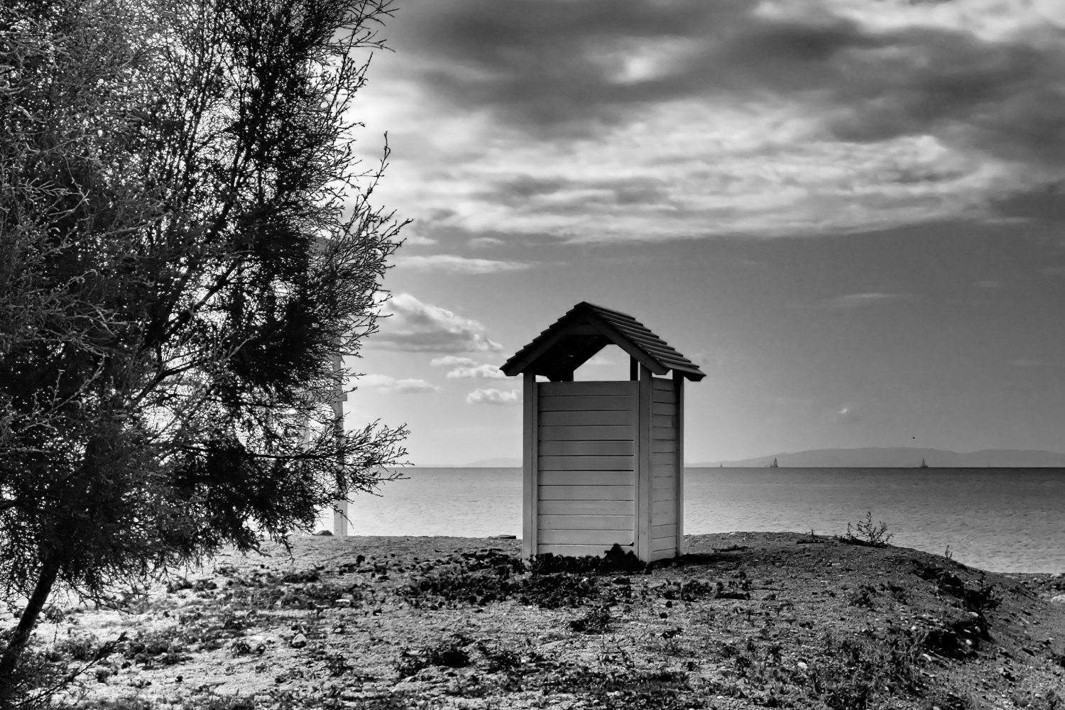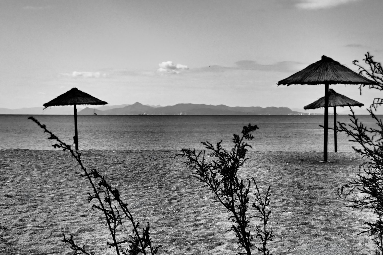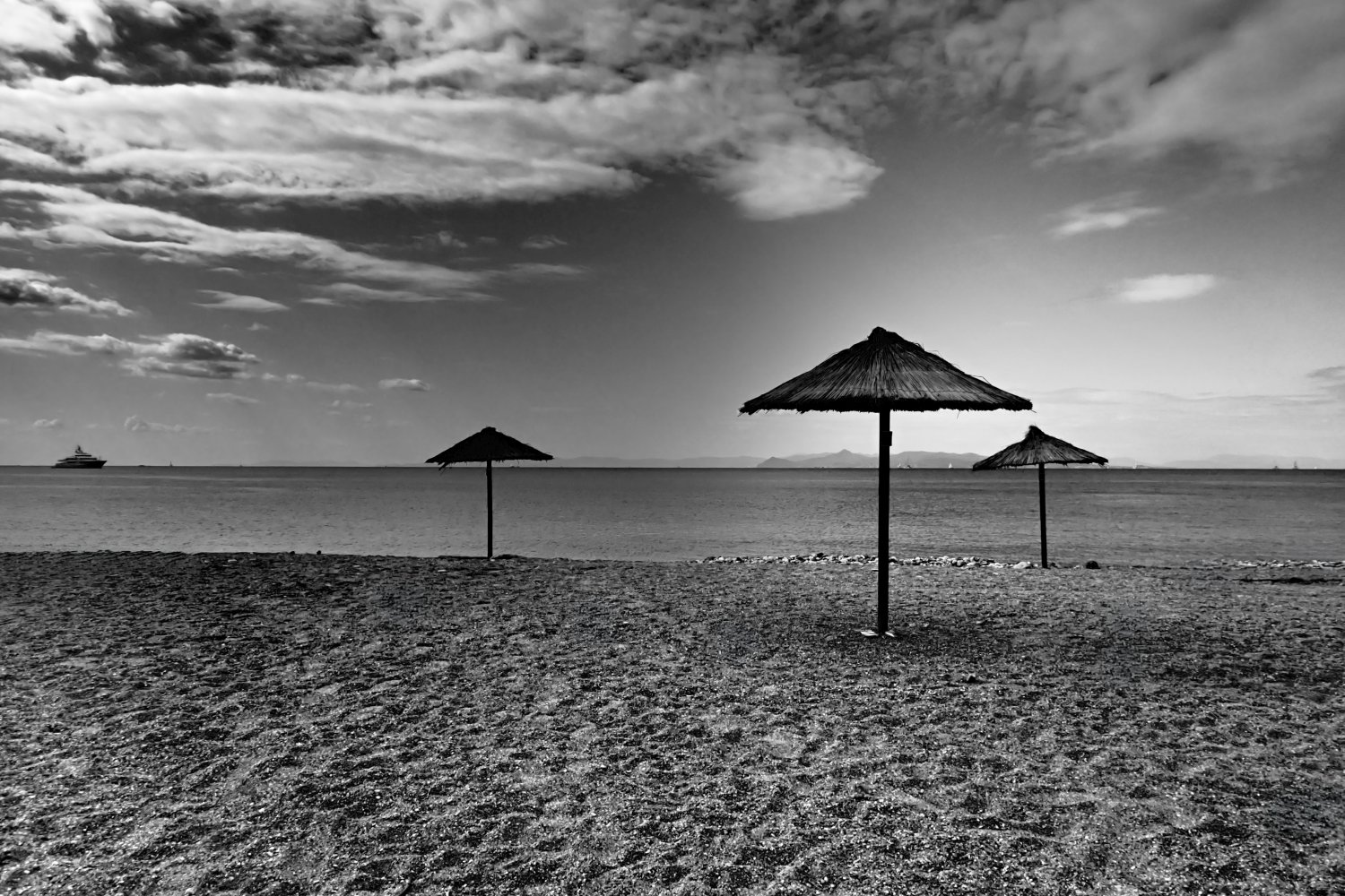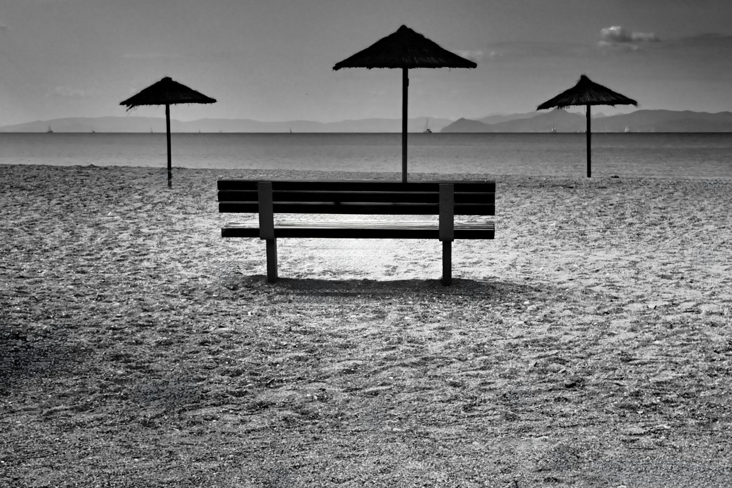 Η παραλία αλλάζει ρυθμό, χάνει τους ανθρώπους κάτω από τις ομπρέλες και η θάλασσα παίρνει πιο σκούρο χρώμα. Ο αέρας γίνεται δροσερός, οι γραμμές του ορίζοντα καθαρίζουν και ο ήχος των κυμάτων δίνει ρυθμό στην απαλή κίνηση του τοπίου. Ο ήλιος χαμηλώνει και φωτίζει τα σύννεφα, δίνοντας δραματικό ύφος στον ουρανό.