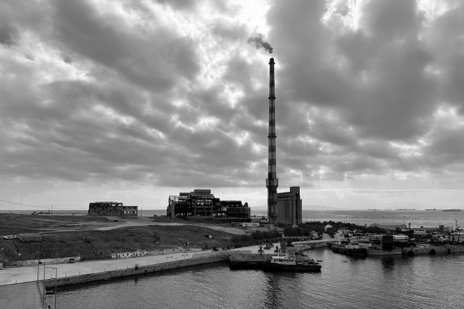 Κέλυφος του παλιού εργοστασίου λιπασμάτων (Α.Ε.Ε.Χ.Π.Λ.), που λειτούργησε από το 1909 έως το 1999. Δίπλα του υψώνεται η καμινάδα, ύψους περίπου 70 μέτρων, το πιο αναγνωρίσιμο βιομηχανικό στοιχείο του Πειραιά. Γύρω από τα ερείπια διακρίνονται τμήματα από αποθήκες, μεταλλικές κατασκευές και το μικρό λιμανάκι των Λιπασμάτων, που σήμερα χρησιμοποιείται για σκάφη και βοηθητικά πλοία.