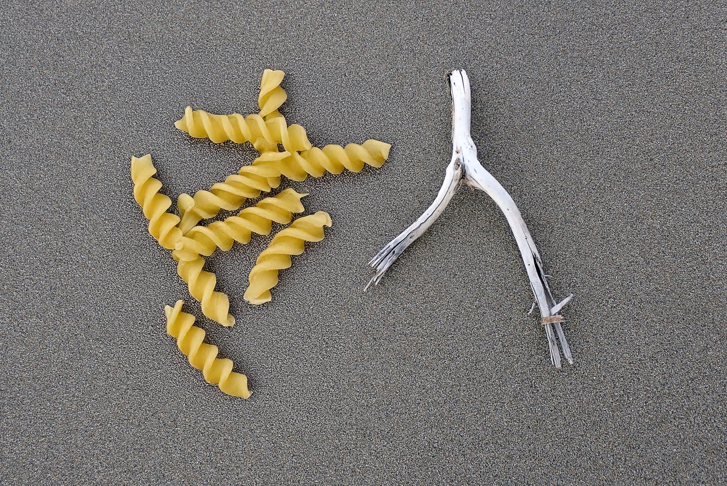 Η καθαρότητα του χώρου, όπως εκφράζεται σε αυτές τις φωτογραφίες με την βρεγμένη άμμο, ενός βότσαλου ή ενός κομματιού ξύλου, αναδεικνύει με φυσικό τρόπο προϊόντα τροφής, όπως τα ζυμαρικά. Το λιτό αυτό περιβάλλον αναδεικνύει την υφή, το χρώμα και τη μορφή των προϊόντων χωρίς περιττά στοιχεία.