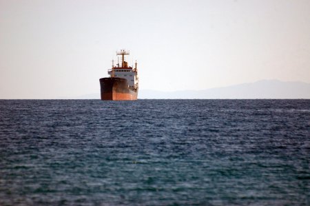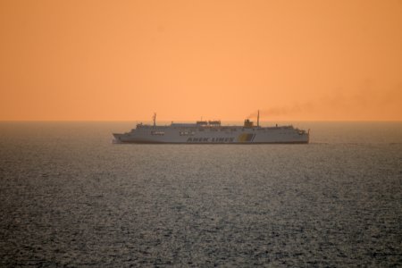 | Εμπορικό πλοίο πάνω στη γραμμή του ορίζοντα, Λαύριο, Αττική |