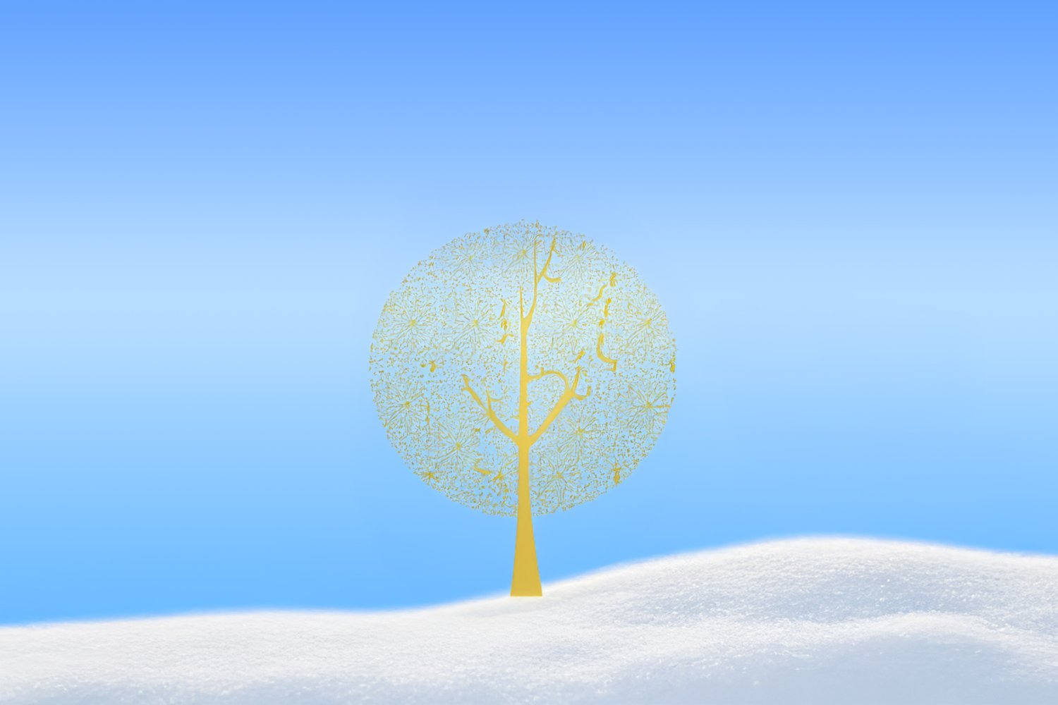 Το δέντρο συμμετέχει στη γιορτή όπως συμμετέχει ένα σώμα στον χώρο. Καταλαμβάνει θέση, δημιουργεί σχέση με το χιόνι και τον ουρανό, δίνει μέτρο στο βλέμμα. Όπου υπάρχουν στολίδια, εντάσσονται στη μορφή του και ακολουθούν το περίγραμμά του, χωρίς να αλλάζουν τον χαρακτήρα του.