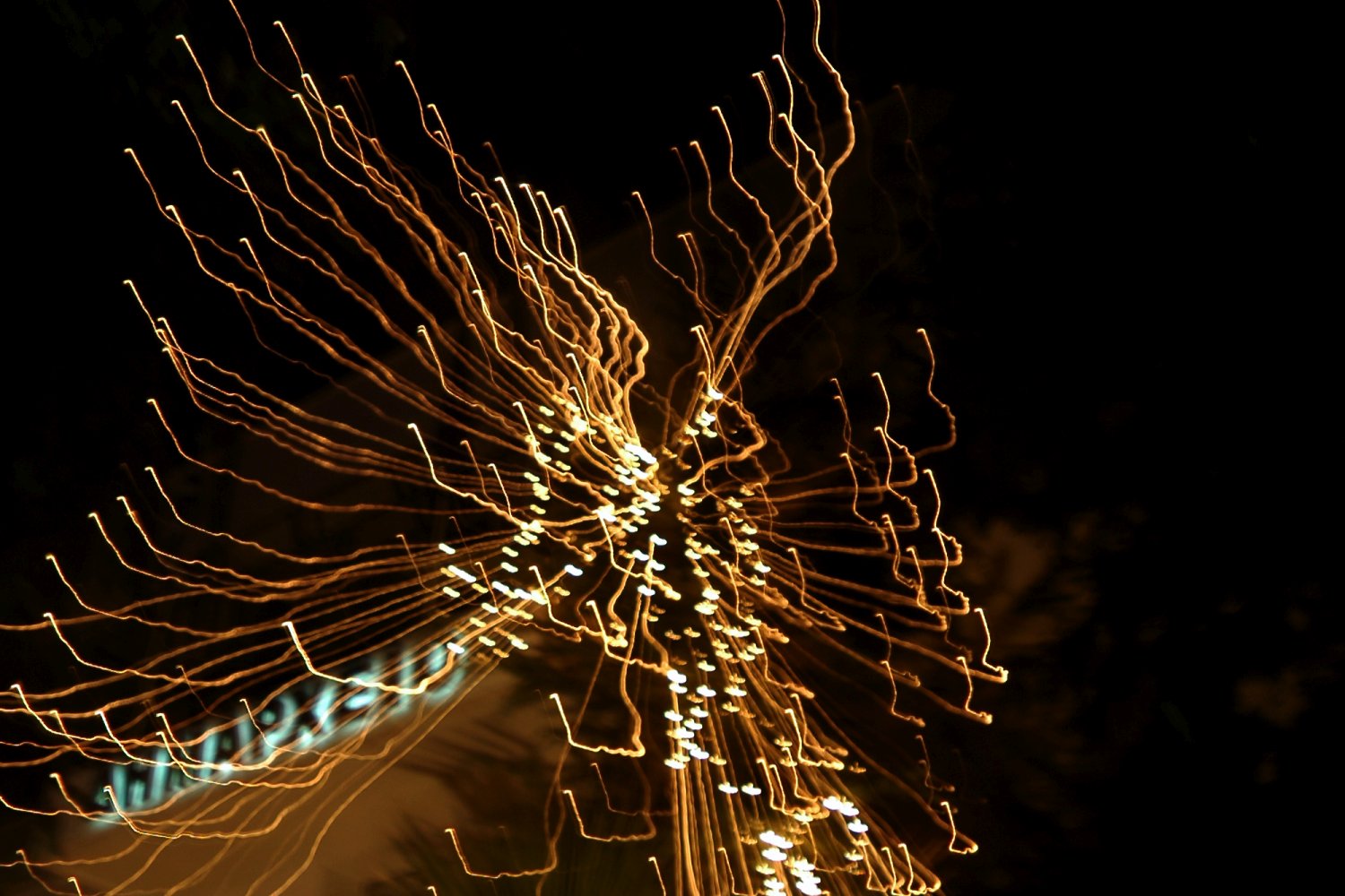 Το out of focus προσδίδει επίσης μια υφή ομίχλης στις φωτεινές γραμμές και τα στίγματα, κάνοντας τα να αιωρούνται σκοτεινό φόντο. Η απουσία εστίασης μαλακώνει τις άκρες και θολώνει τις λεπτομέρειες, ενισχύοντας την αίσθηση της κίνησης και της ρευστότητας.