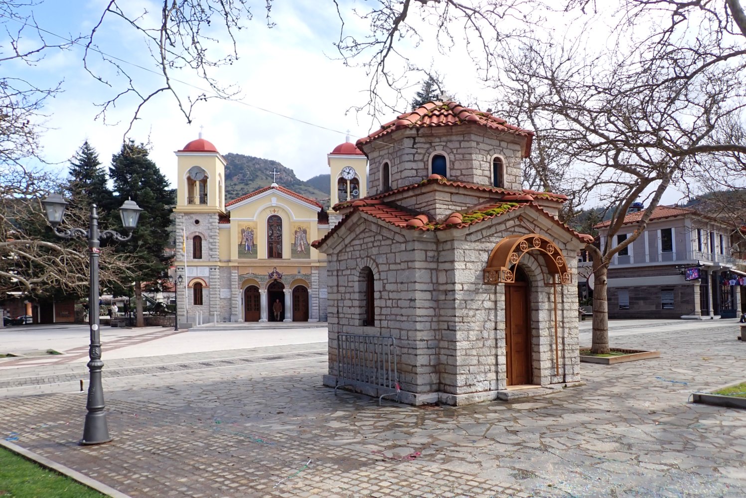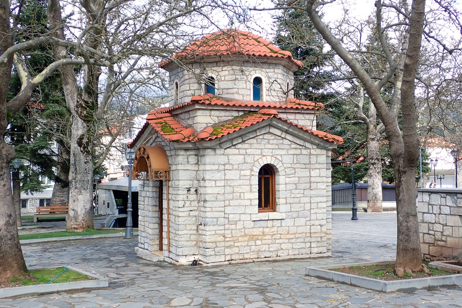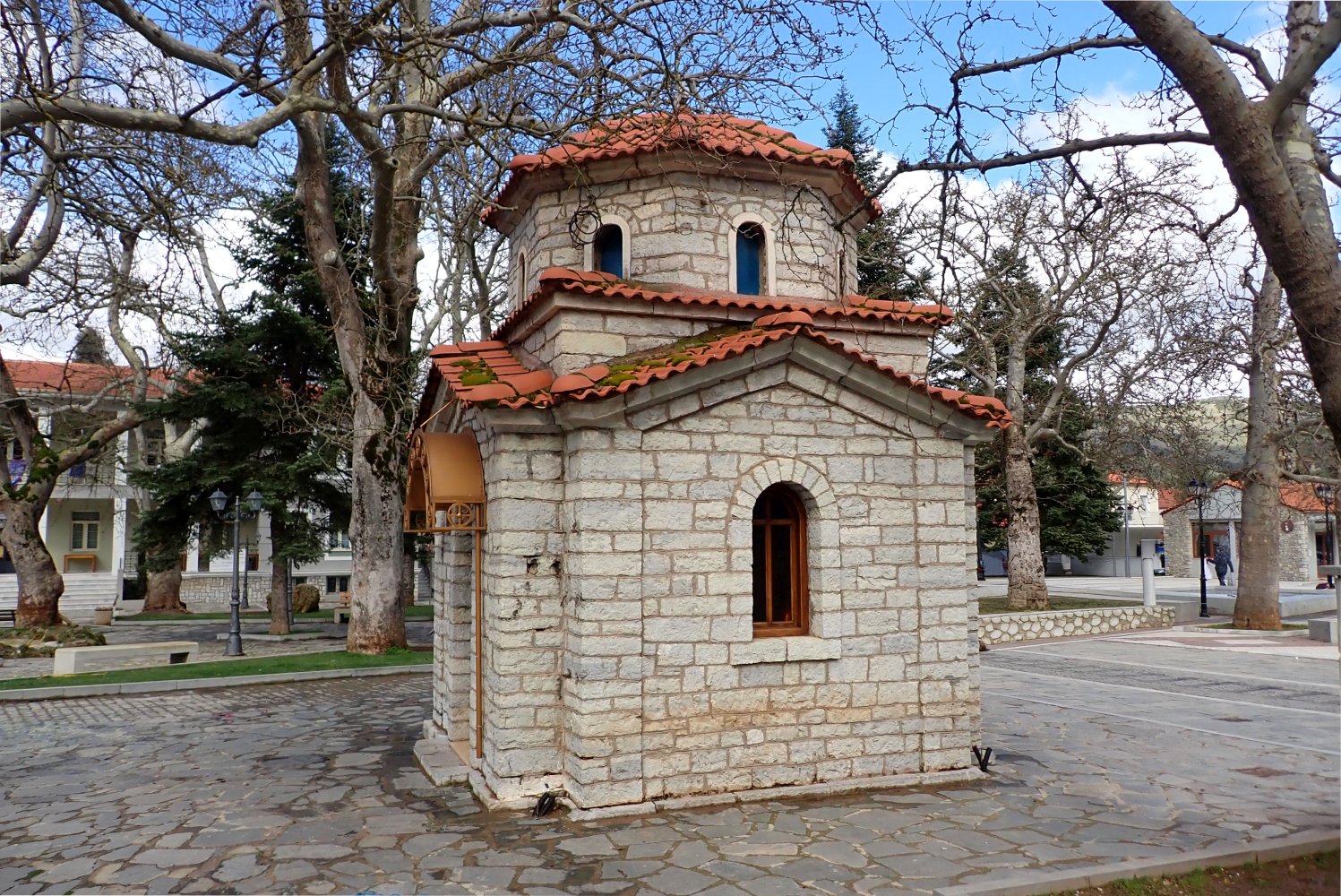 To μικρό εκκλησάκι–παρεκκλήσι που βρίσκεται στην πλατεία των Καλαβρύτων δεν έχει ξεχωριστή επίσημη ονομασία με Άγιο. Συνήθως αναφέρεται απλώς ως μικρό εκκλησάκι και λειτουργεί ως χώρος προσευχής και μνήμης.