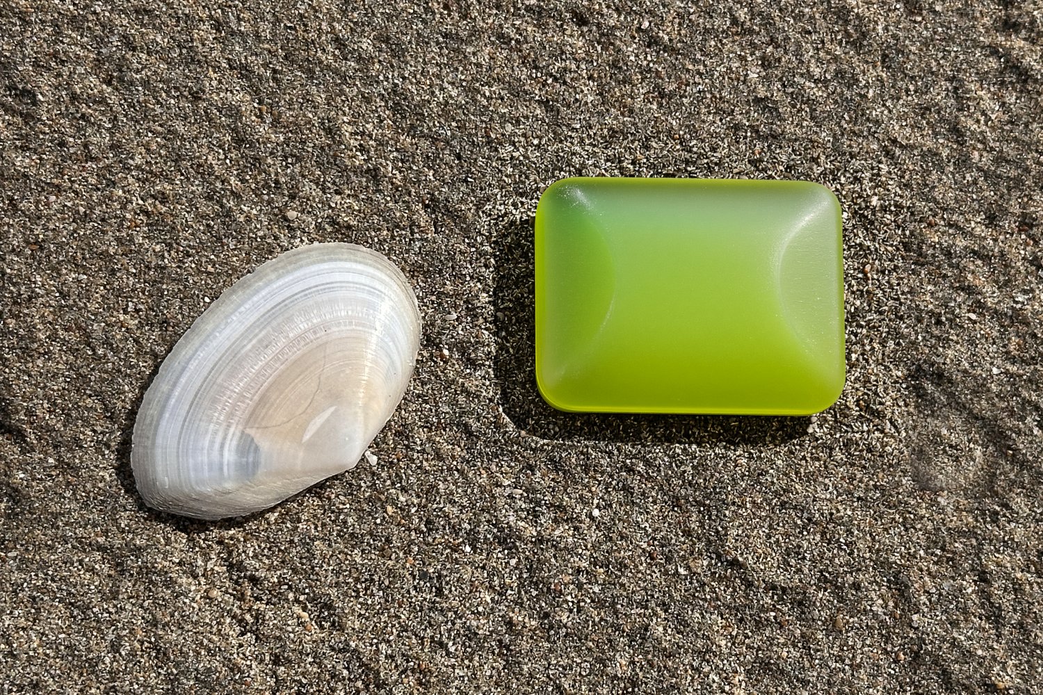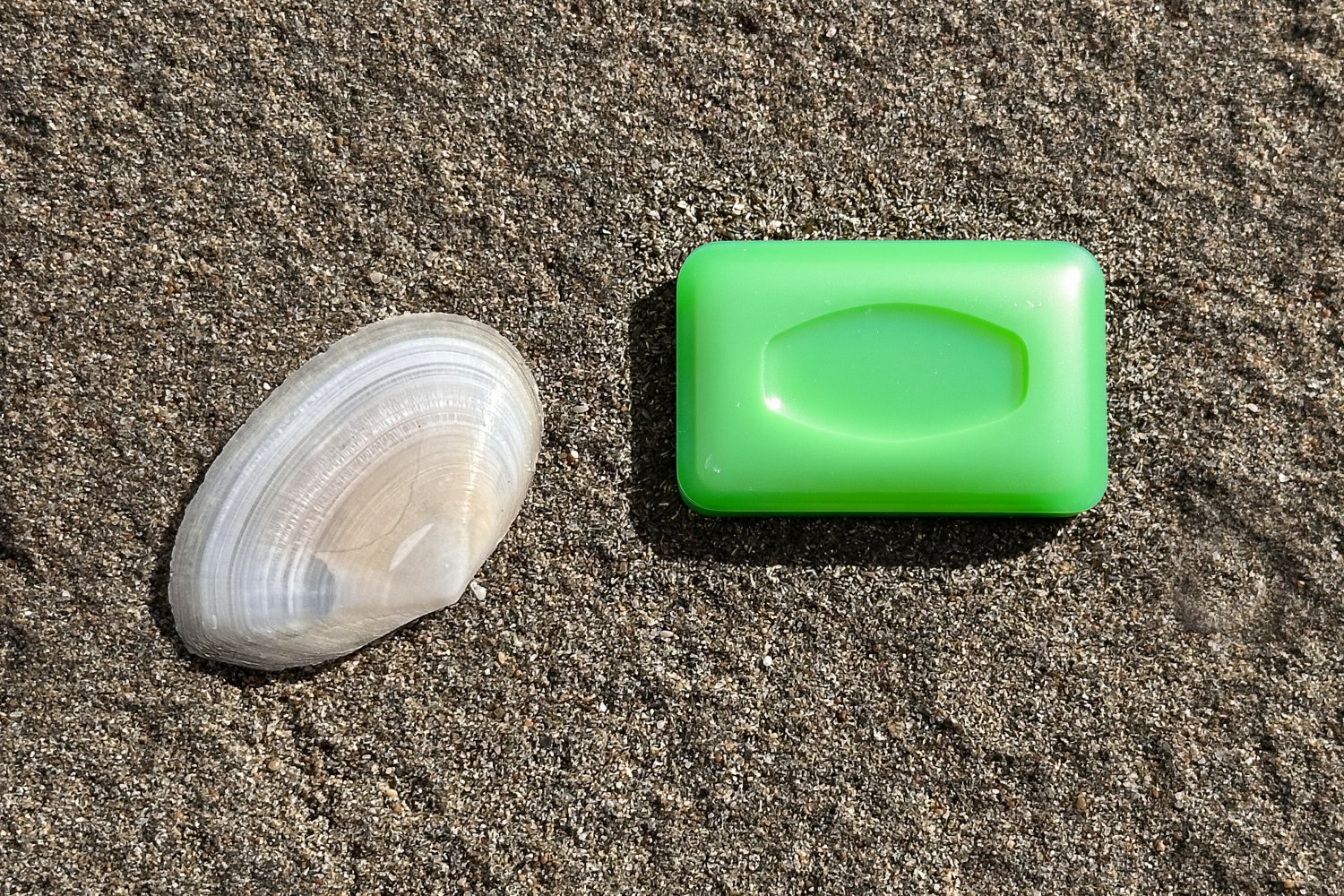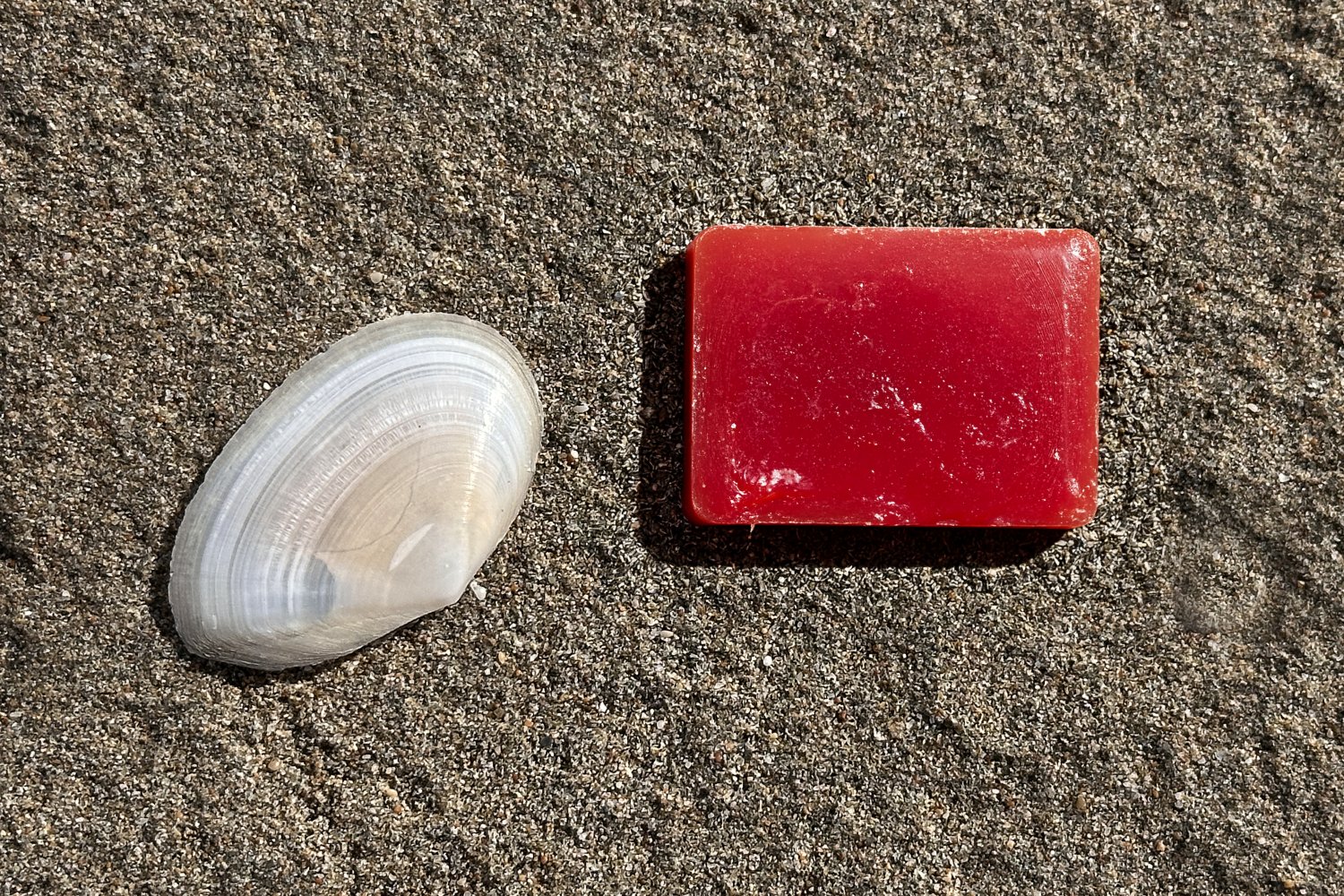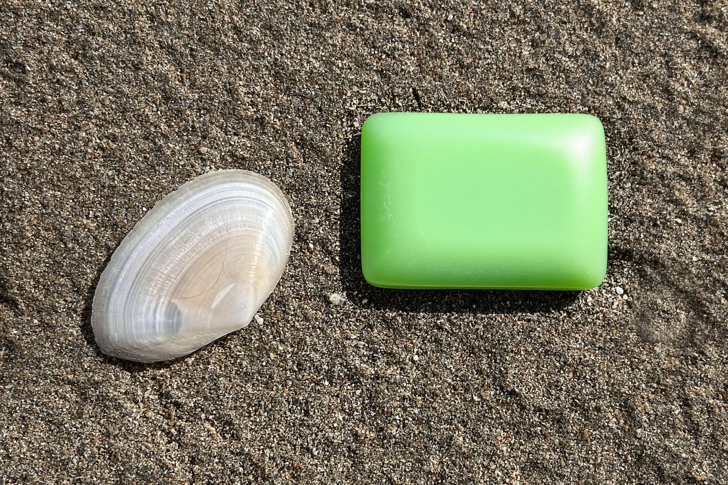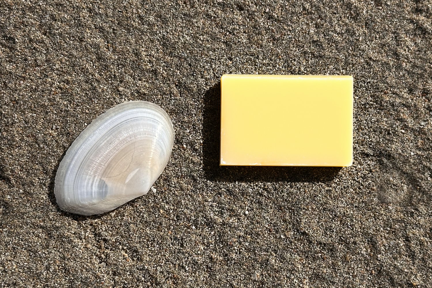 Η σειρά των φωτογραφιών βασίζεται σε μια απλή επιλογή: το φόντο παραμένει σταθερό και το προϊόν αλλάζει. Η άμμος της παραλίας και το λευκό όστρακο λειτουργούν ως φυσικό σκηνικό χωρίς τεχνητές παρεμβάσεις, προβάλλοντας την καθαρότητα, το αλάτι και τη σχέση τους με τη σύσταση του σαπουνιού, το νερό και το δέρμα.