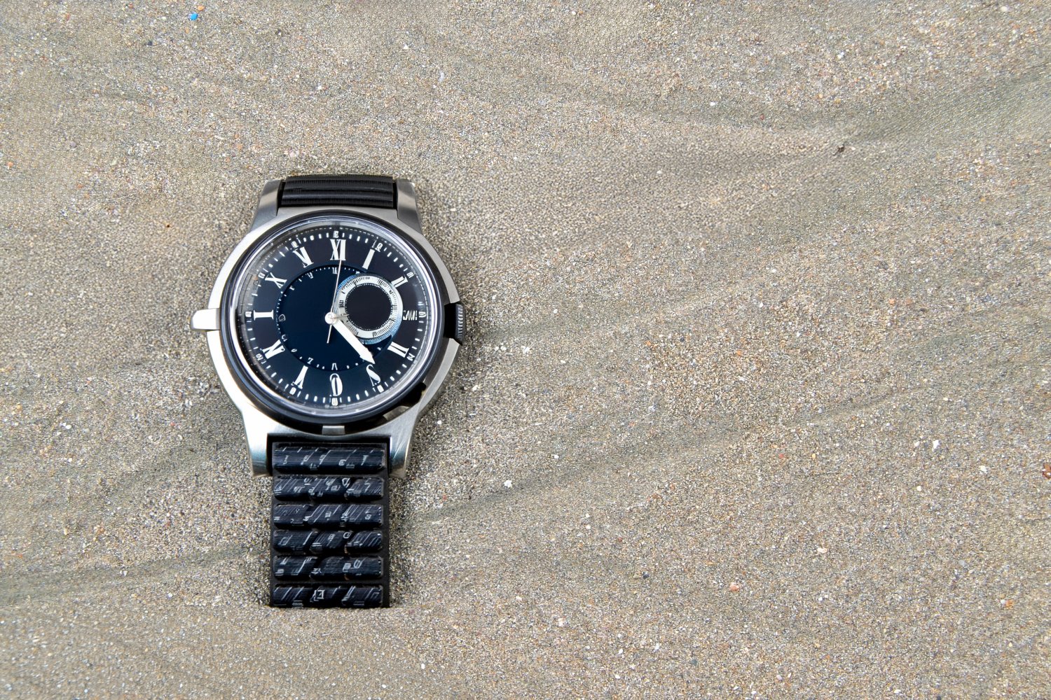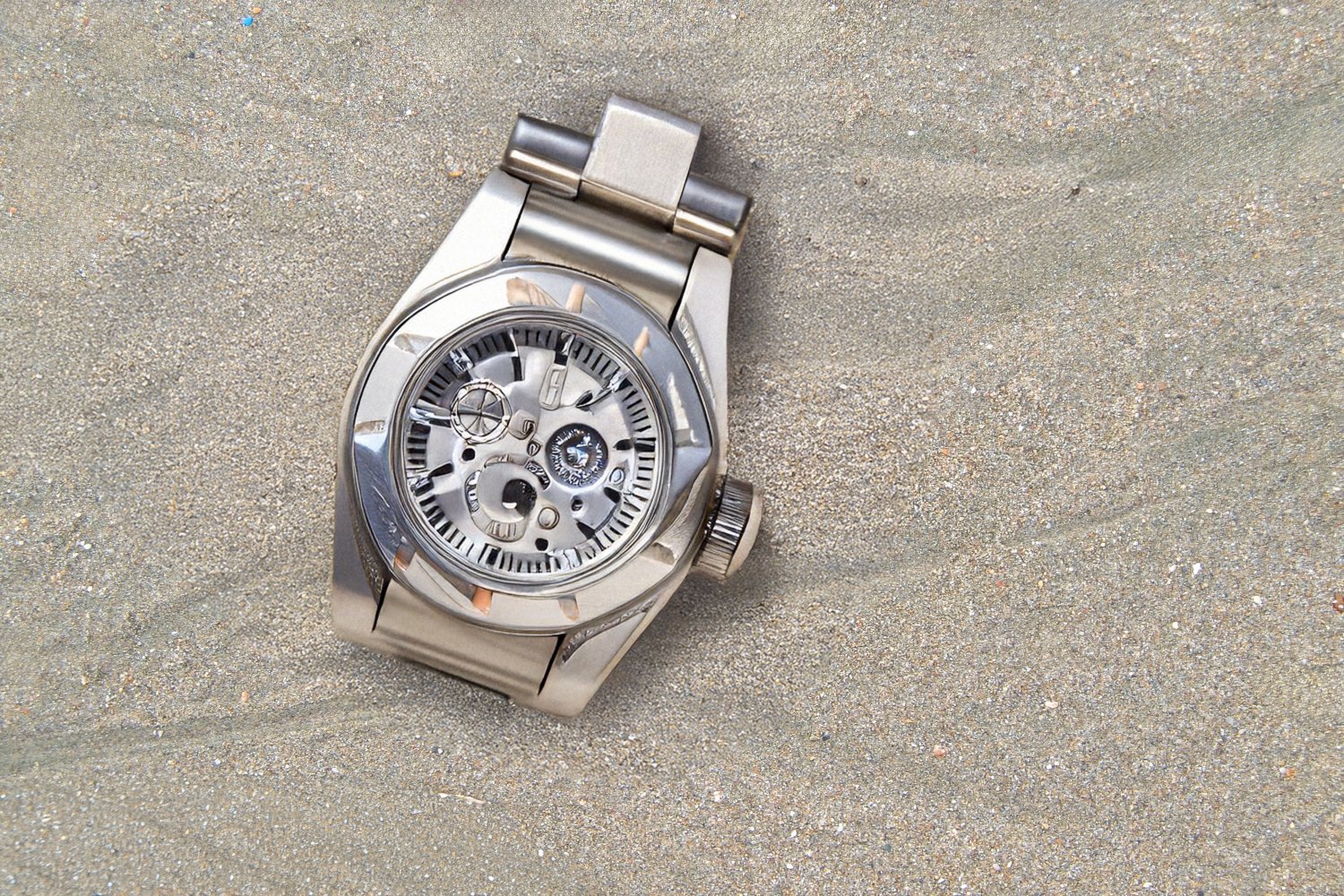 Η σειρά των φωτογραφιών βασίζεται σε μια απλή επιλογή: το φόντο παραμένει σταθερό και το προϊόν αλλάζει. Η βρεγμένη άμμος της παραλίας λειτουργεί ως ένα αυστηρό, φυσικό σκηνικό χωρίς τεχνητές παρεμβάσεις, προβάλλοντας την ανθεκτικότητα, τη στιβαρότητα και την άμεση σχέση των καταδυτικών ρολογιών με το θαλασσινό στοιχείο, την πίεση και την περιπέτεια.