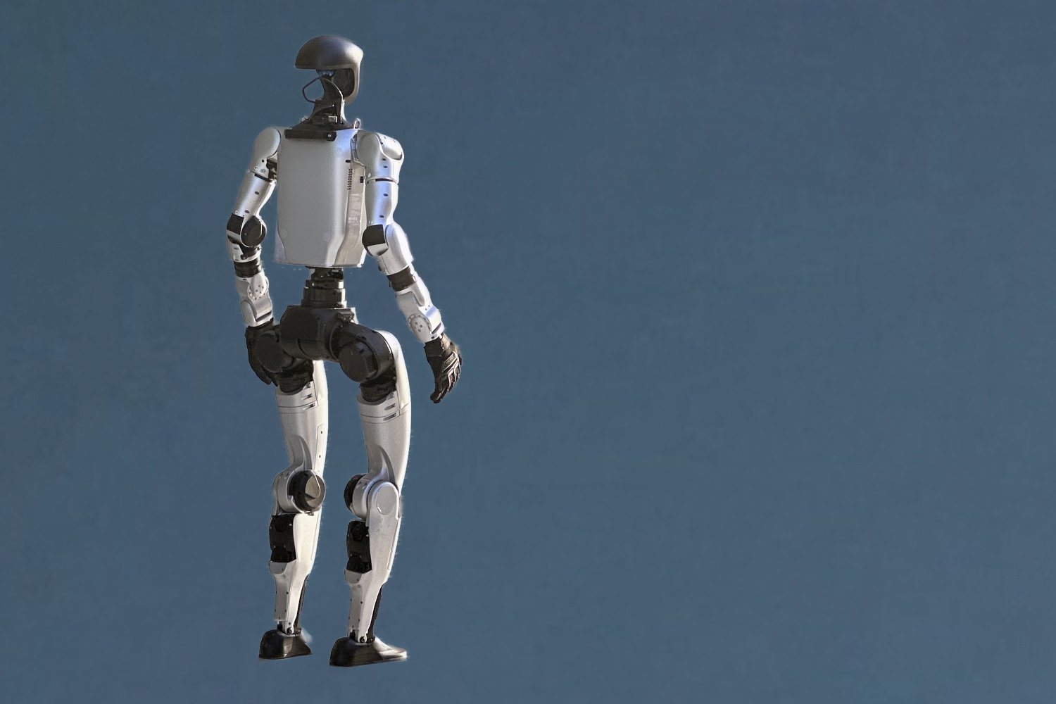 Οι φωτογραφίες παρουσιάζουν ένα ανθρωποειδές ρομπότ, δηλαδή μια μηχανή με μορφολογία που αντιστοιχεί στο ανθρώπινο σώμα, με κεφαλή, κορμό, άνω και κάτω άκρα και αρθρωτές συνδέσεις που επιτρέπουν την κίνηση. Η κατασκευή του βασίζεται σε συνδυασμό μηχανολογικών εξαρτημάτων, αισθητήρων και υπολογιστικών συστημάτων, τα οποία συνεργάζονται για τη διατήρηση ισορροπίας, την εκτέλεση κινήσεων και την αντίληψη του περιβάλλοντος.