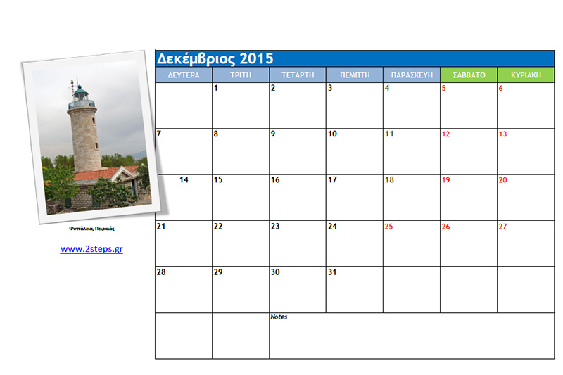 | 2015 Ημερολόγιο ανά μήνα με θέμα: "Πέτρινοι Φάροι" |
