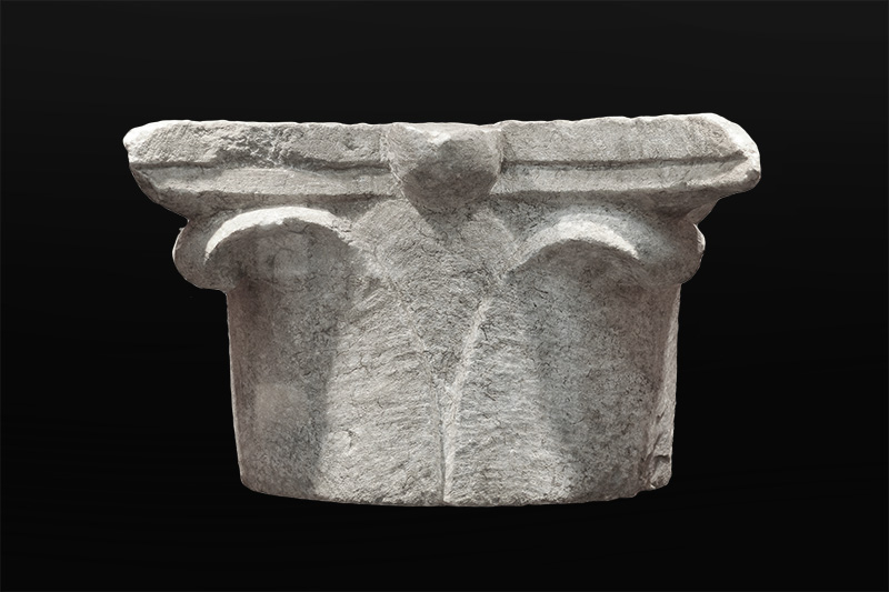 | Κιονόκρανο από γκρίζο μάρμαρο, Αρχαιολογικό Μουσείο Άμφισσας |