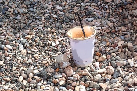 Καφές (Freddo Espresso) πάνω σε βότσαλα, Βουλιαγμένη, Αττική |