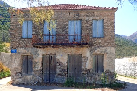 Εγκαταλελειμμένο αγροτόσπιτο με θαλασσί πόρτα, Γλύφα, Φθιώτιδα |