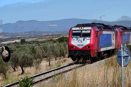 | Διέλευση τραίνου από διάβαση, Τιθορέα, Φθιώτιδα |