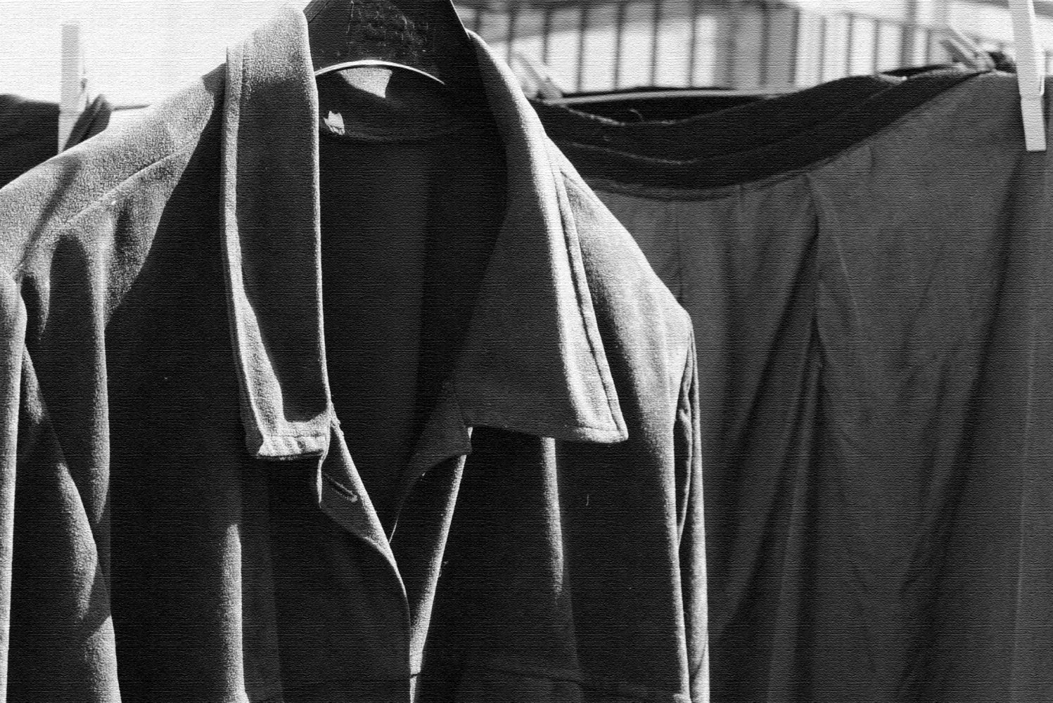 Μαύρα ρούχα κρεμασμένα σε σκοινί