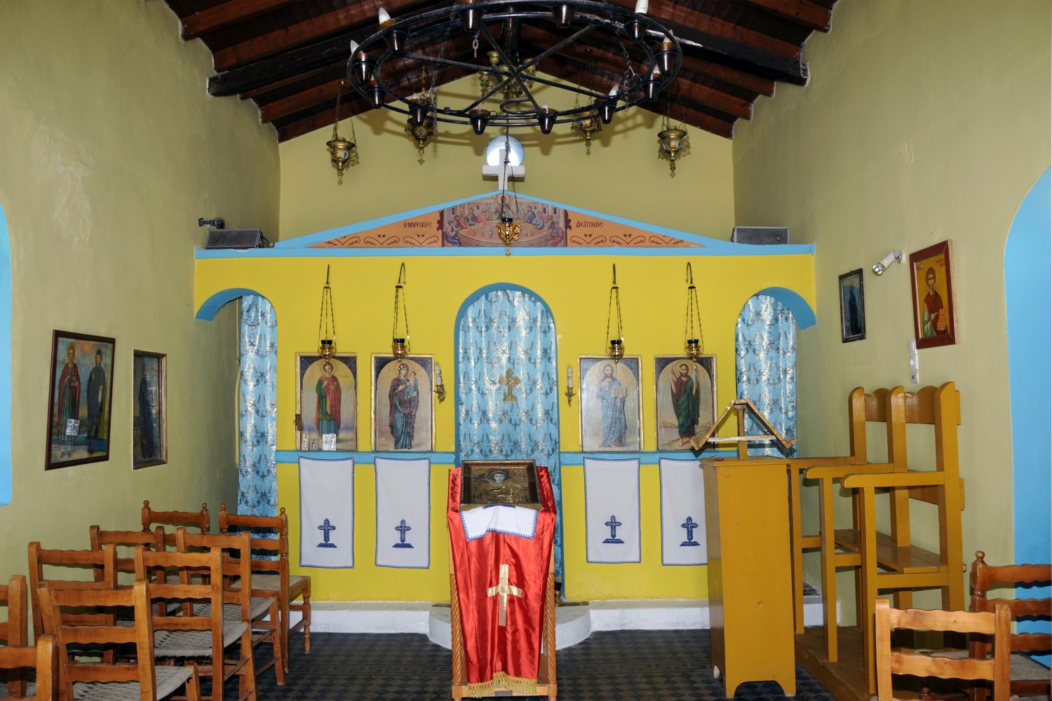 Το κίτρινο χρώμα του εσωτερικού του, σου δίνει την εντύπωση ότι το εκκλησάκι φτιάχτηκε για παιδιά ή ακόμη καλύτερα, για να σε κάνει να νοιώθεις σαν παιδί.