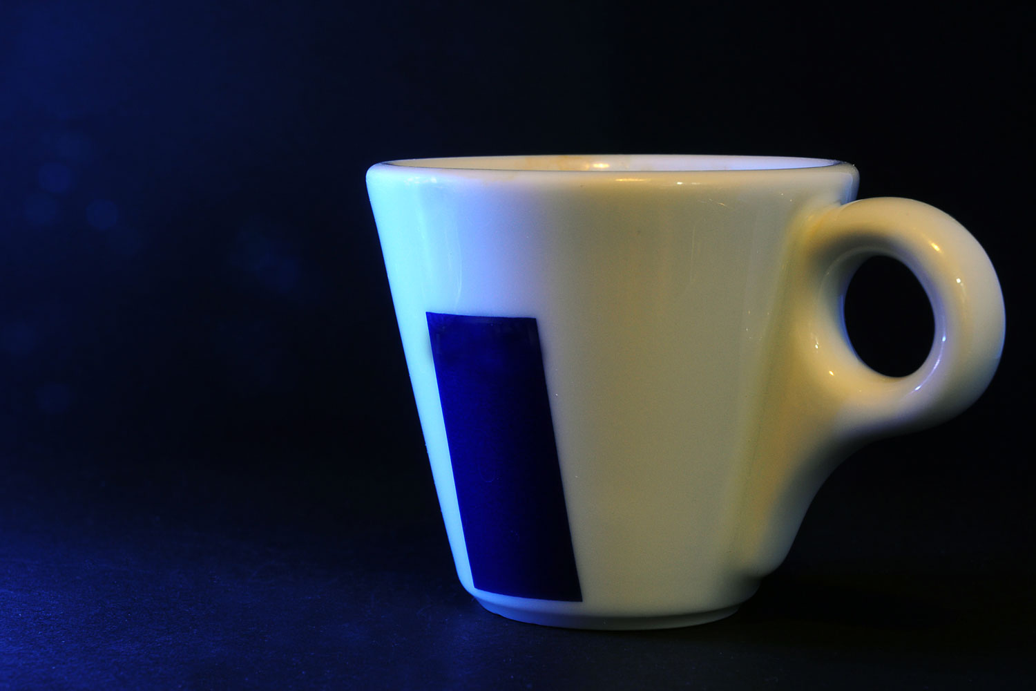 Φλιτζανάκι για καφέ σε σκούρο μπλε φόντο.