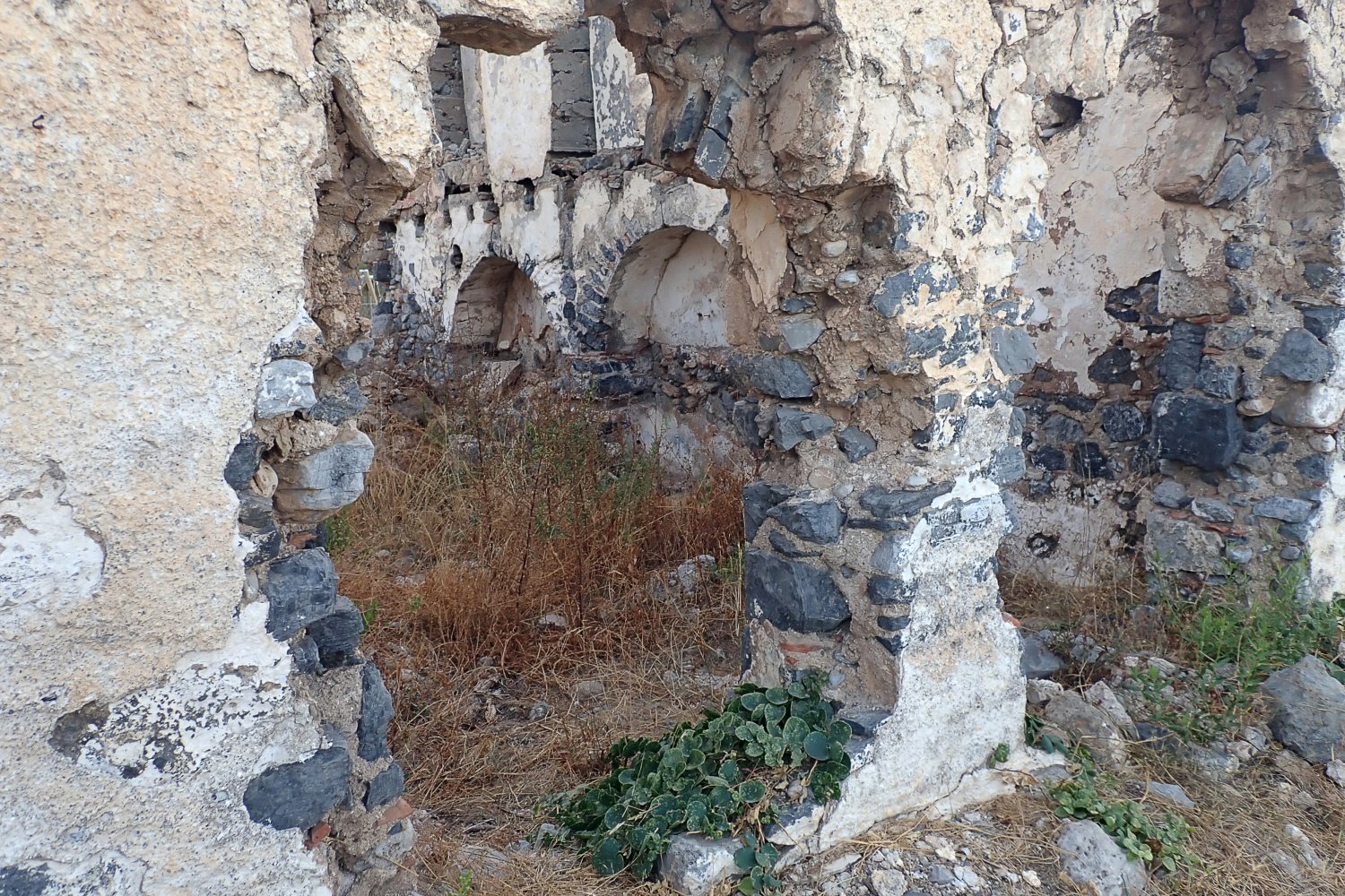 Ερειπωμένα πέτρινα κτήρια, πιθανόν δίπατο σπίτι και αποθήκη στα Πούλιθρα.