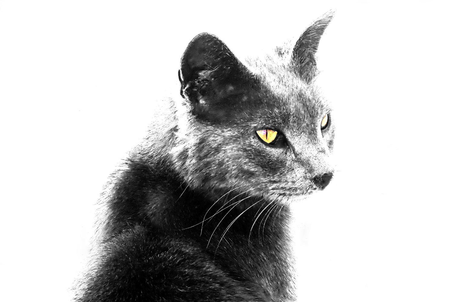Ασπρόμαυρη φωτογραφία γκρι γάτας. Προφίλ.
