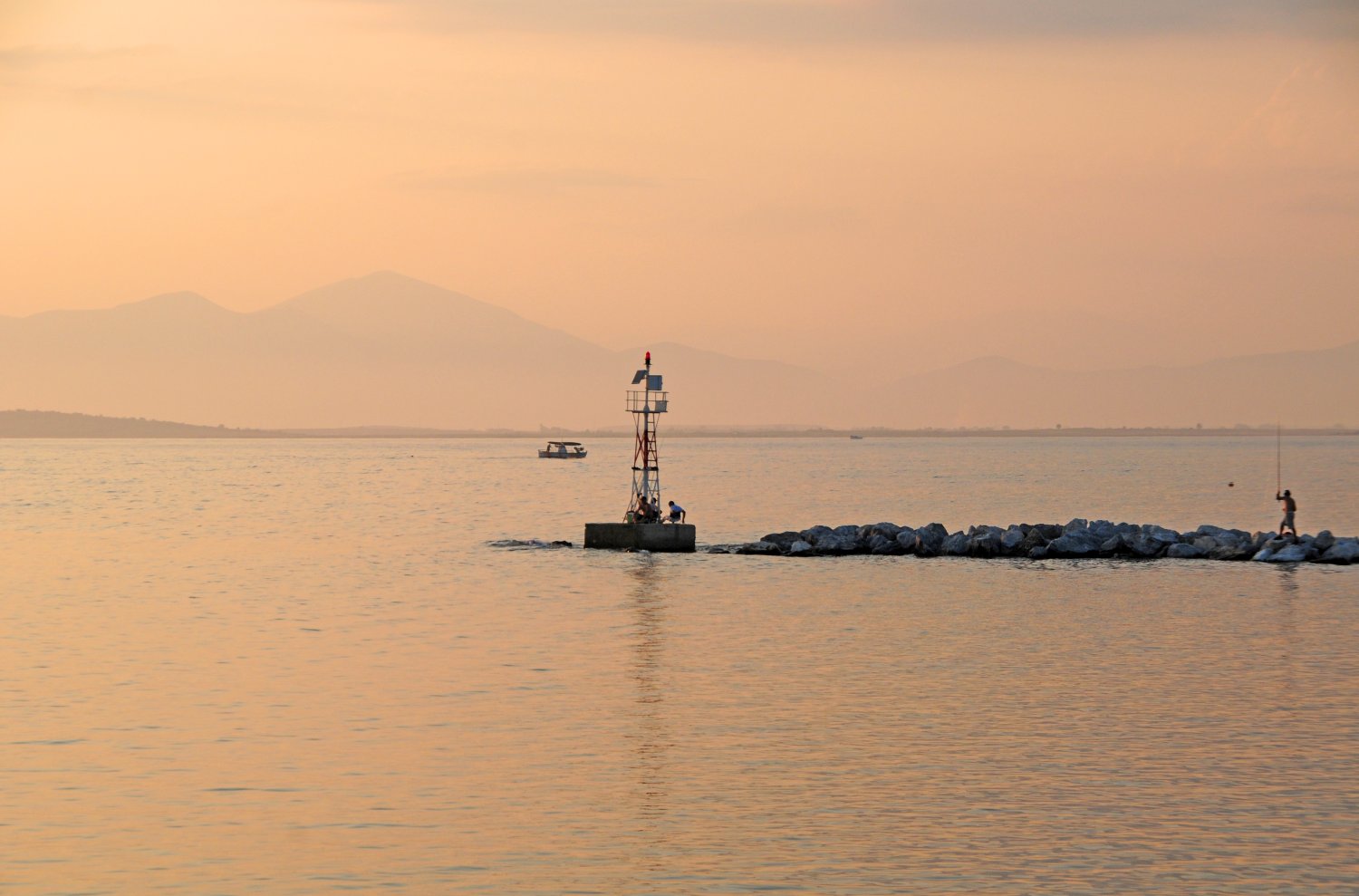 Δύο μεταλλικά φανάρια που οριοθετούν την είσοδο του λιμανιού στο Φανάρι (Ροδόπη).