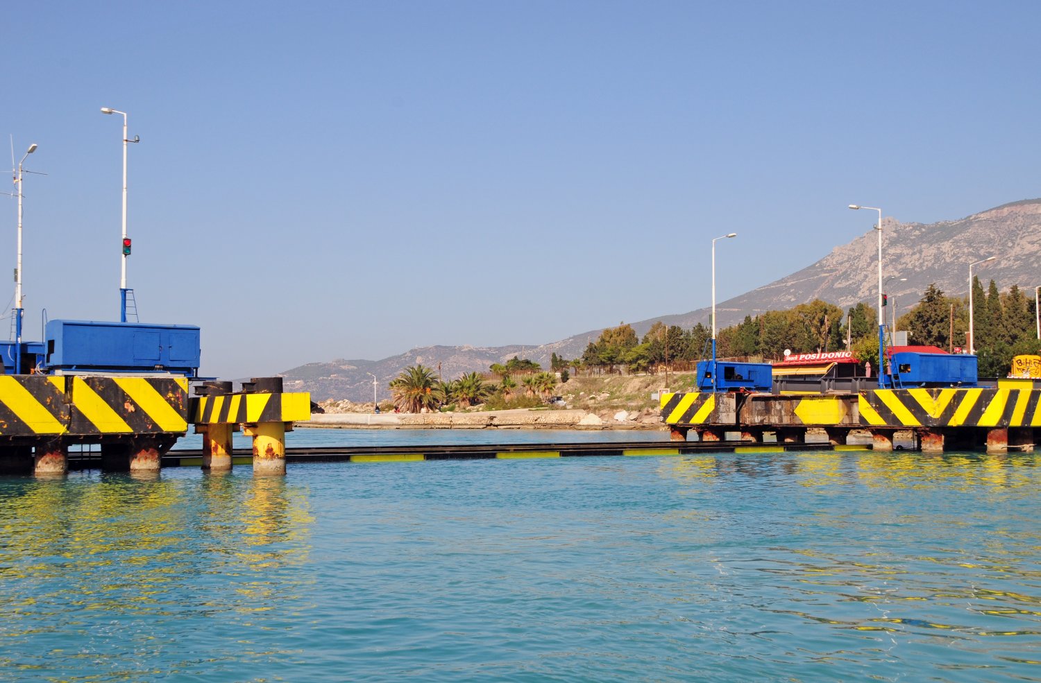 Η βυθιζόμενη γέφυρα της Ποσειδωνίας βρίσκεται στον Ισθμό για να διευκολύνει τα αυτοκίνητα να περάσουν τη διώρυγα, όταν δεν την διασχίζουν πλοία.