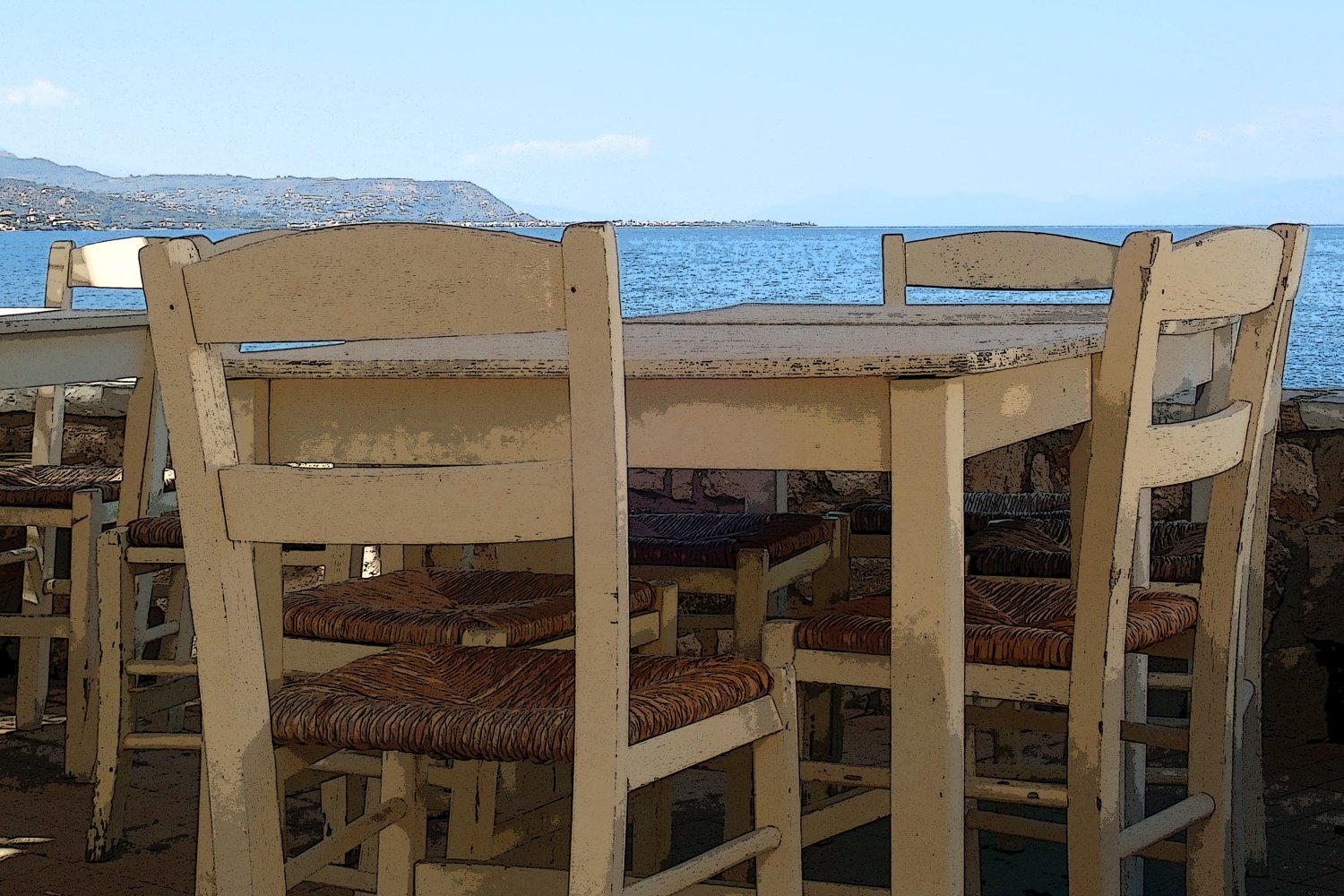 Ξύλινο τραπέζι με θέα στη θάλασσα, Δερβένι, Κορινθία