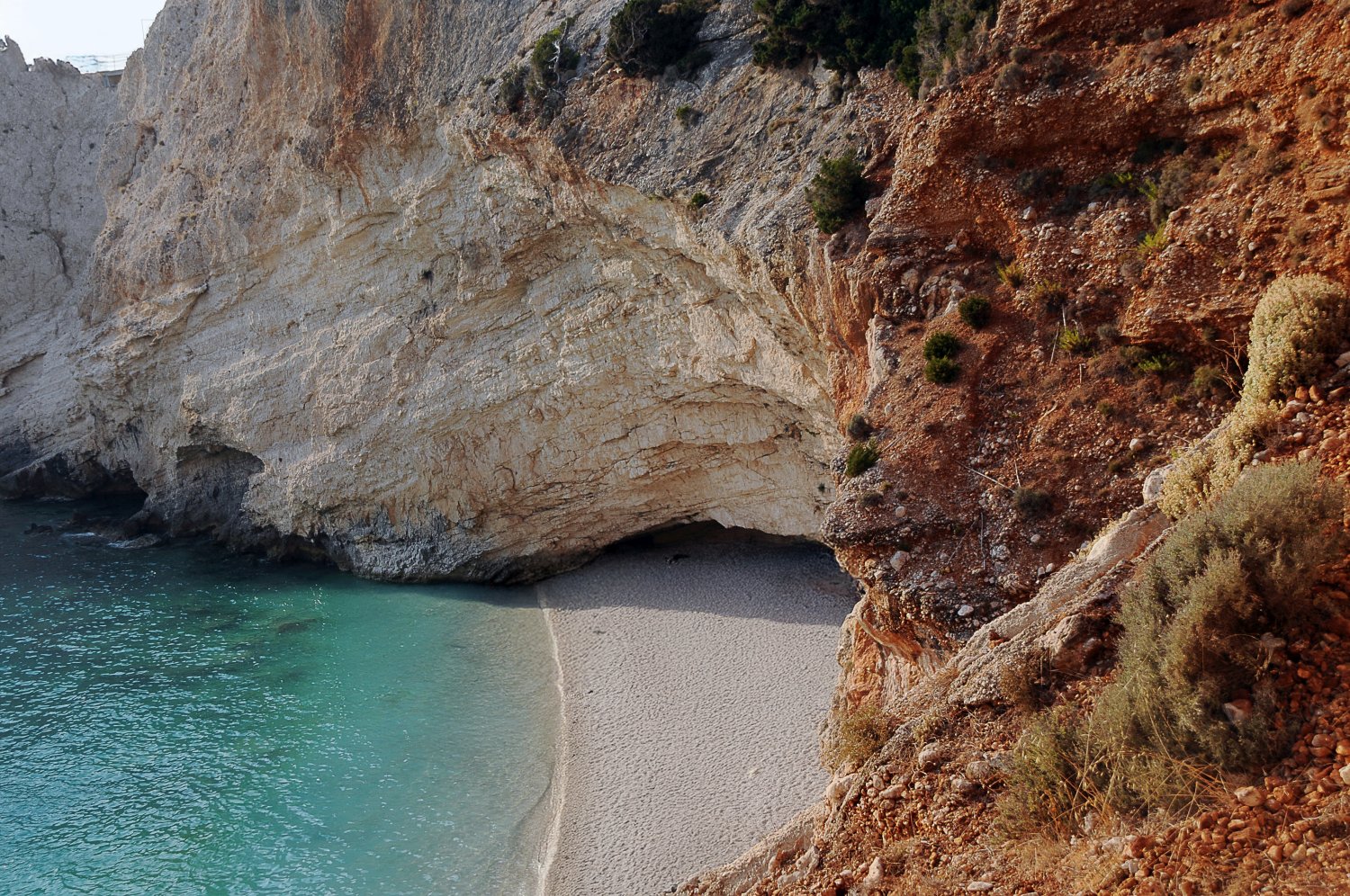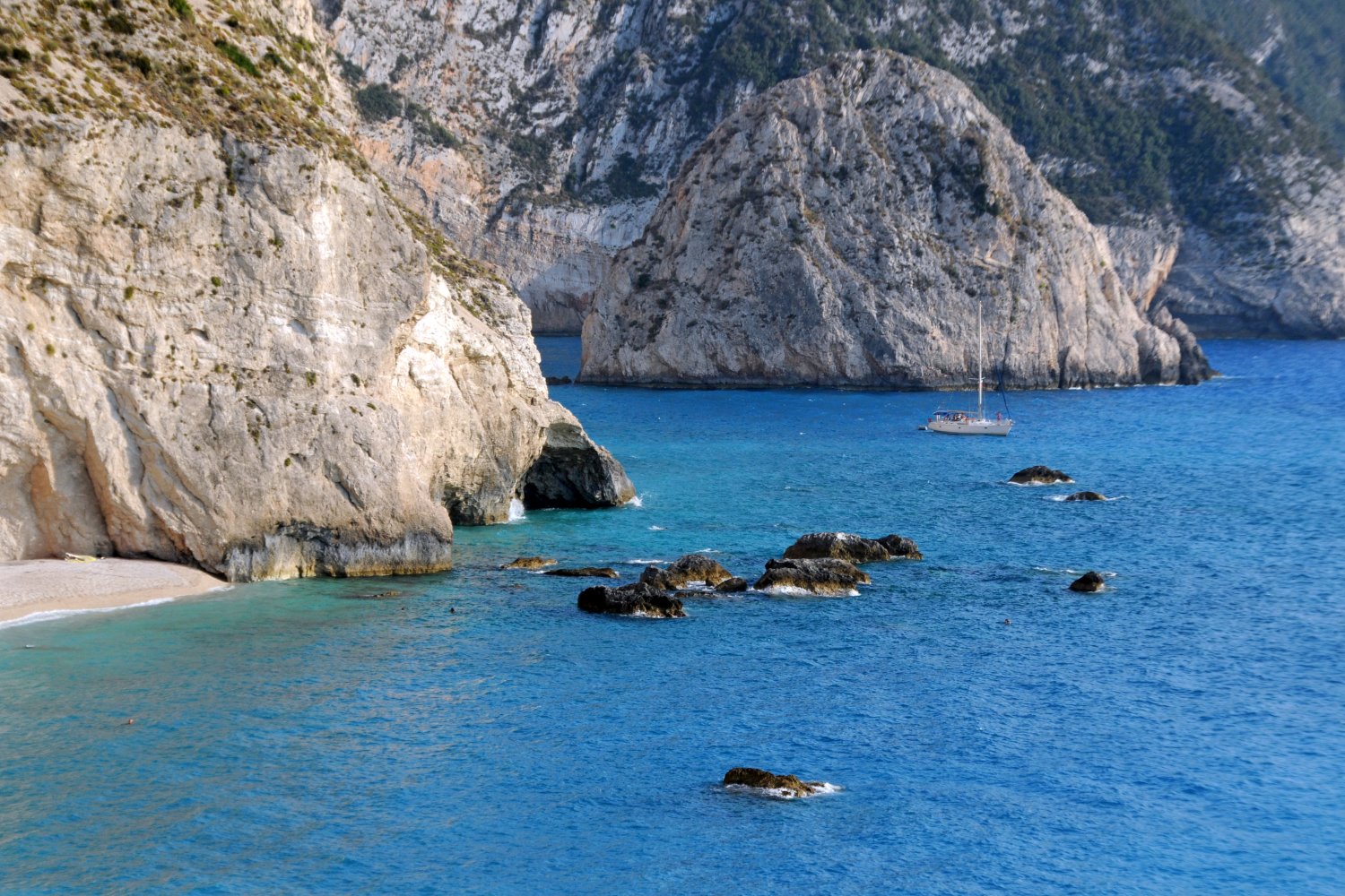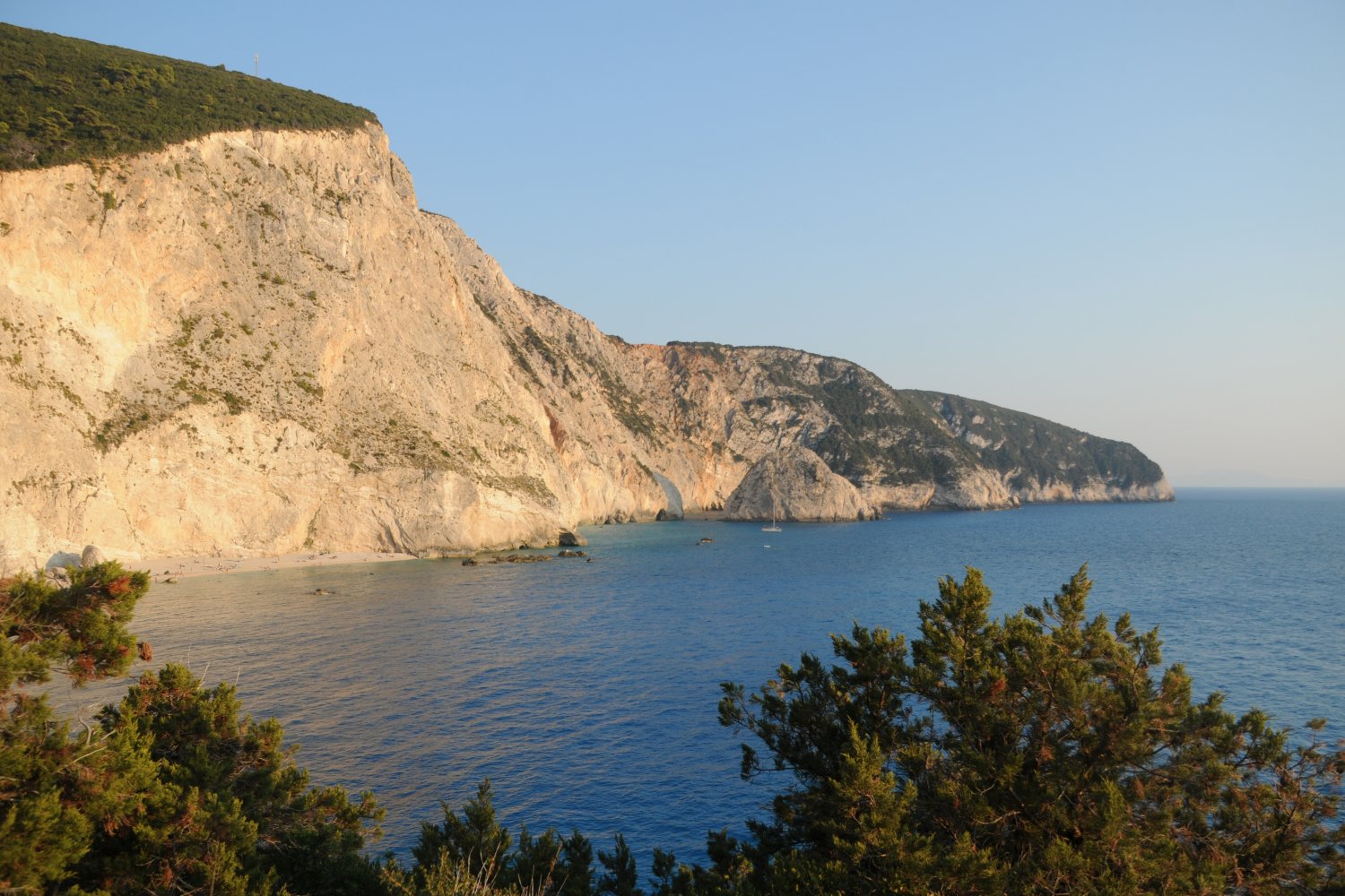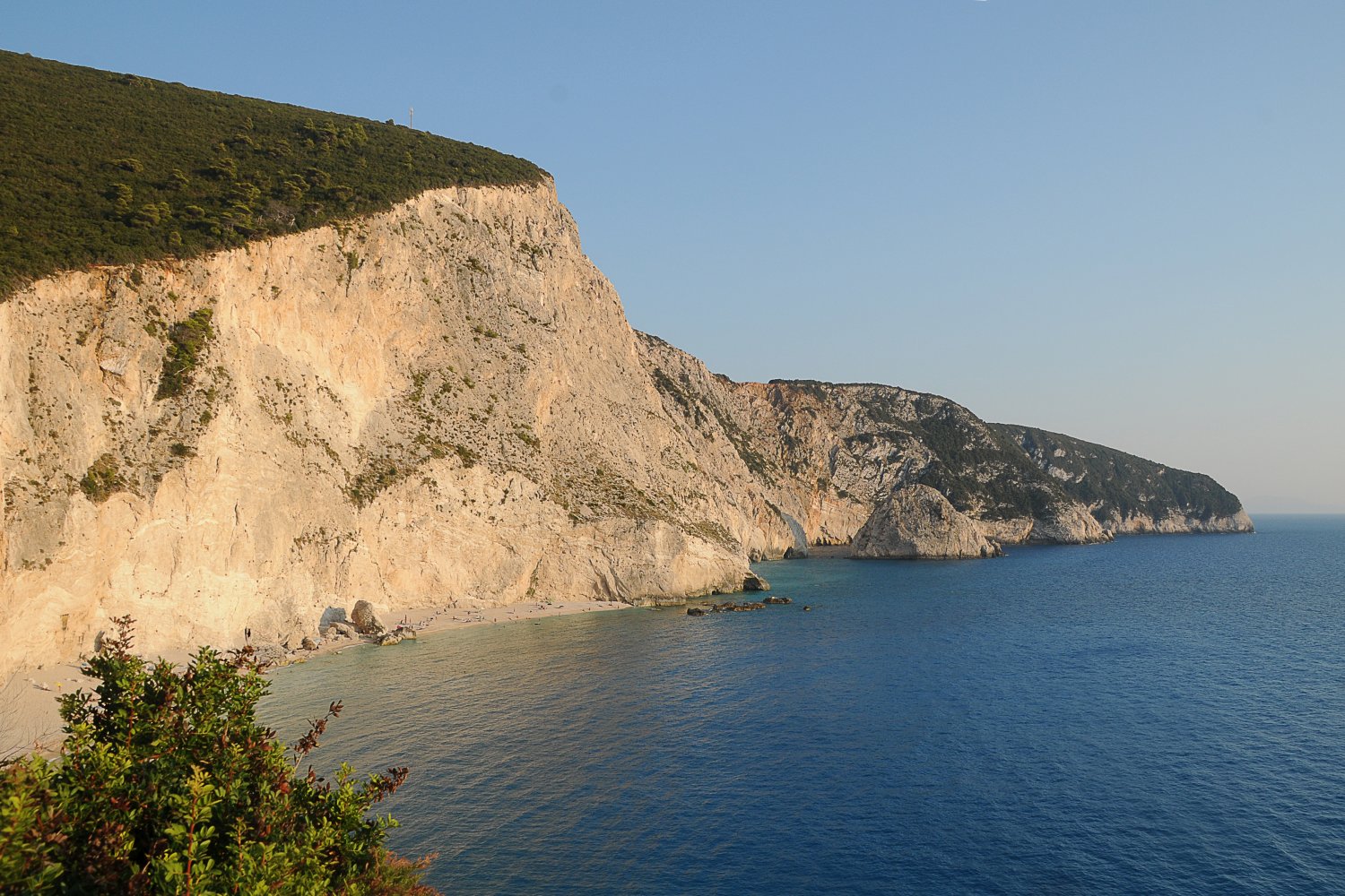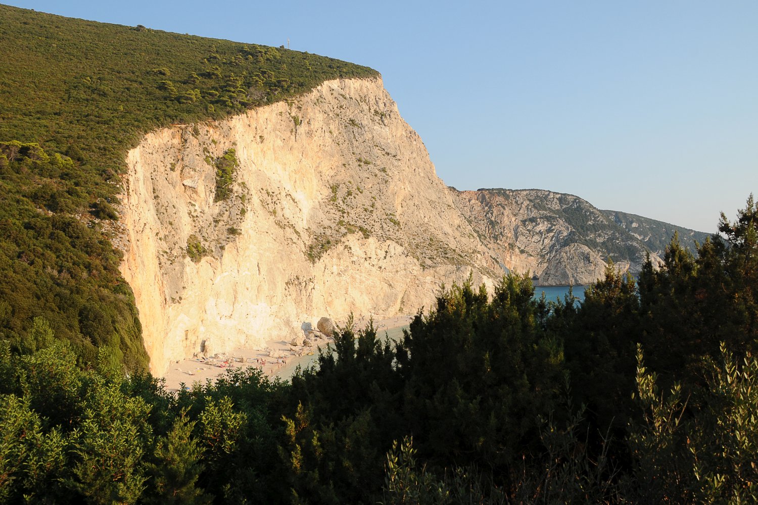 Η παραλία Πόρτο Κατσίκι βρίσκεται στο νοτιοδυτικό άκρο της Λευκάδας και αποτελεί έναν από τους πιο γνωστούς φυσικούς σχηματισμούς του Ιονίου. Η μορφολογία της ακτής οφείλεται στη συνεχή δράση της διάβρωσης πάνω στους λευκούς ασβεστολιθικούς βράχους, που σχηματίζουν ένα κάθετο τείχος ύψους δεκάδων μέτρων πάνω από τη στενή λωρίδα άμμου. Η πρόσβαση γίνεται μέσω μιας απότομης σκάλας, η οποία οδηγεί από τον χώρο στάθμευσης στην παραλία, ενώ η θέα από το επάνω σημείο θεωρείται από τις πιο εντυπωσιακές του ελληνικού τοπίου.