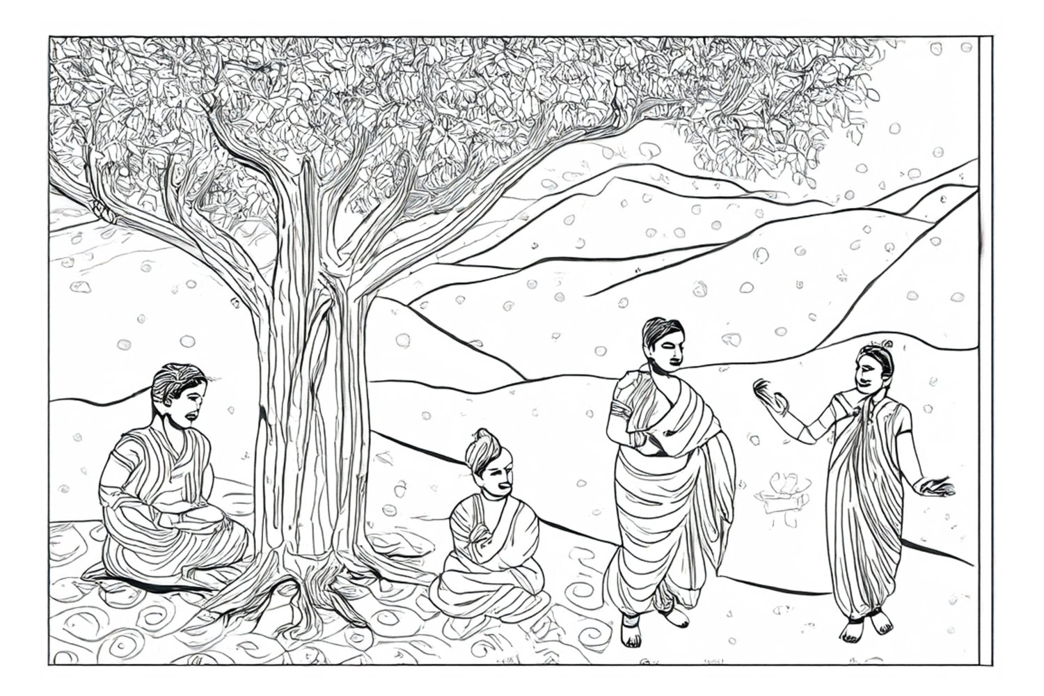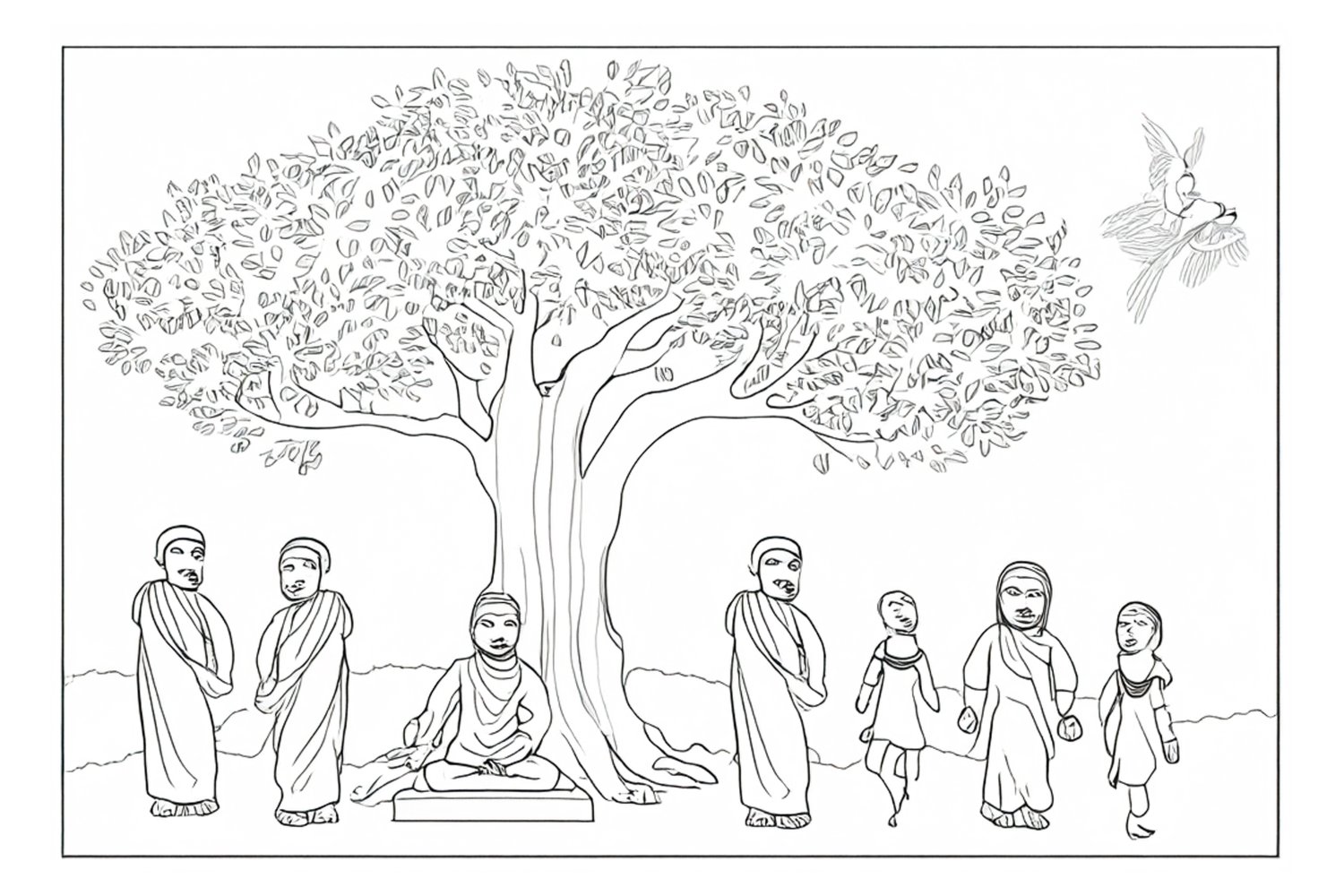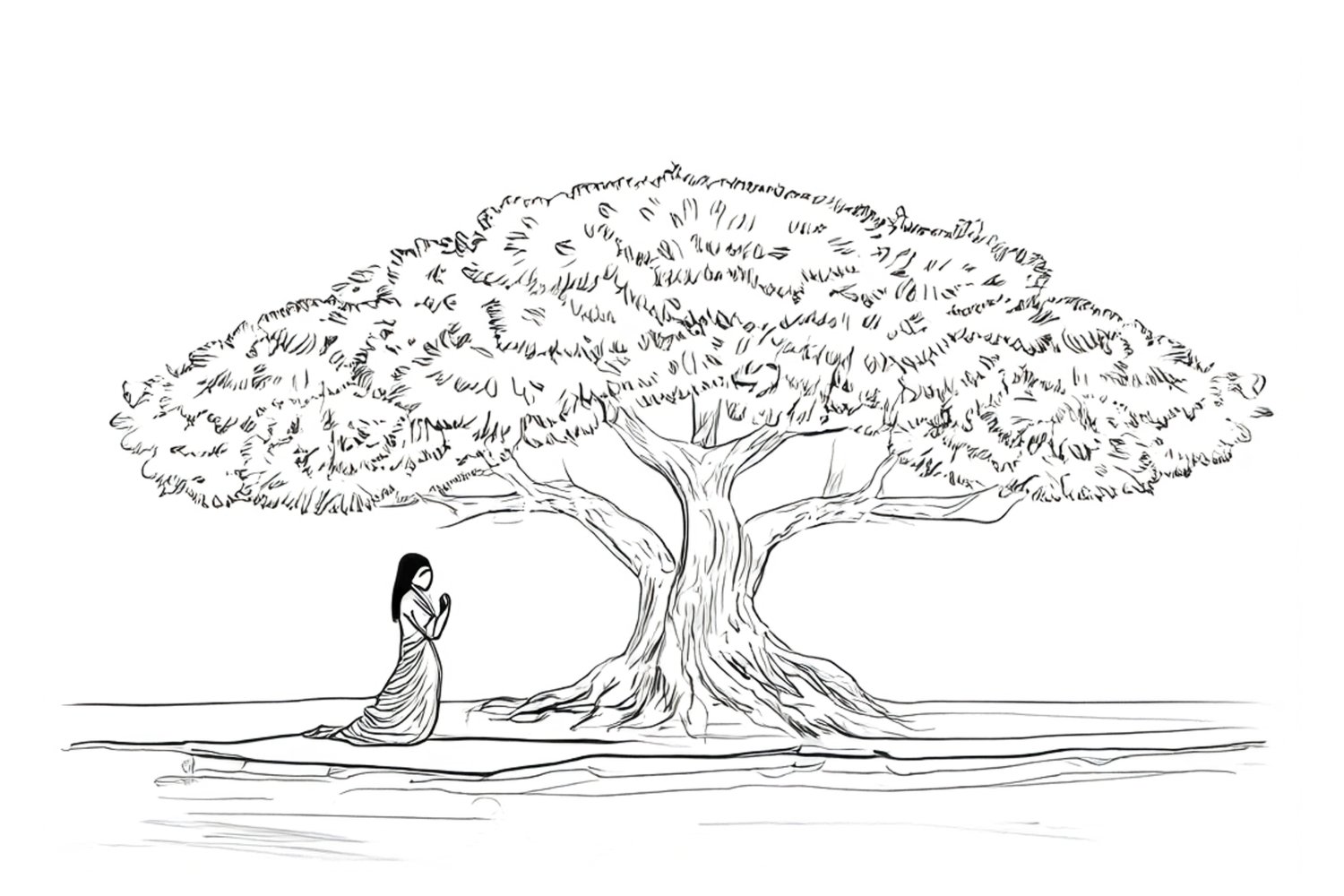 Η Ινδία είναι ένας τόπος όπου η προσευχή αποτελεί μέρος της καθημερινότητας και του δημόσιου χώρου. Εκεί συνυπάρχουν πολλές θρησκείες και παραδόσεις, καθεμία με τους δικούς της τρόπους λατρείας, χωρίς όμως να αποκλείει τις άλλες. Η πράξη της πίστης δεν περιορίζεται στο ιδιωτικό πεδίο αλλά εκδηλώνεται συλλογικά, σε δρόμους, ποτάμια, ναούς και αυλές. Η εικόνα ανθρώπων που συγκεντρώνονται γύρω από ένα δέντρο είναι συνηθισμένη και εκφράζει αυτήν ακριβώς τη σύζευξη του φυσικού και του ιερού, όπου το δέντρο λειτουργεί ως σημείο προσανατολισμού και κοινής αναφοράς.