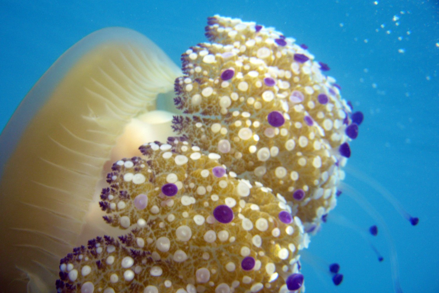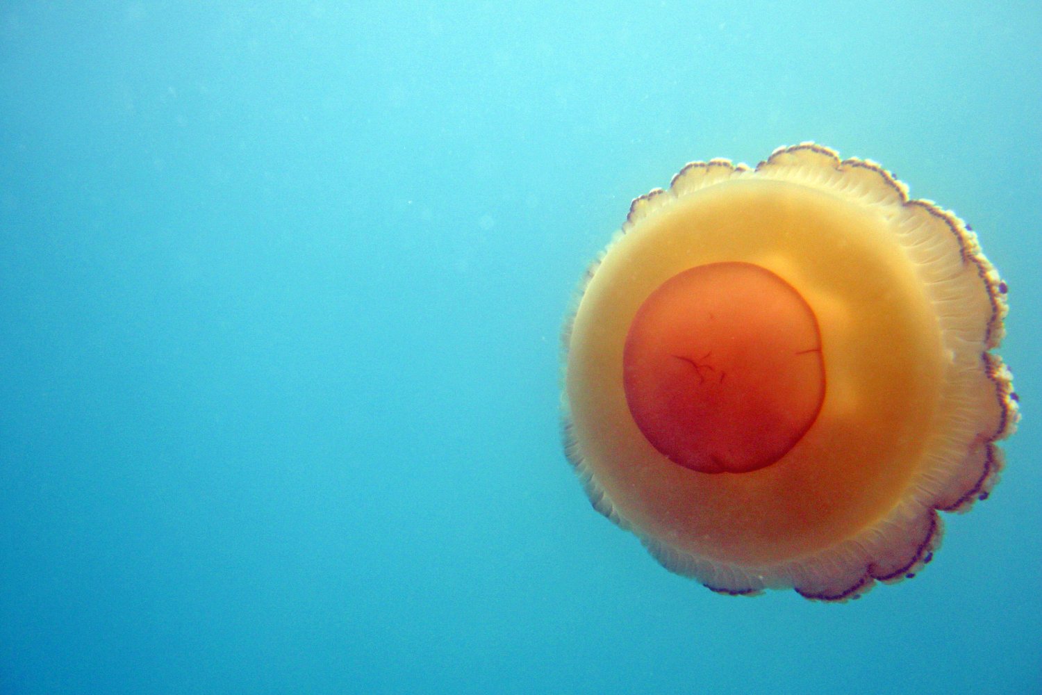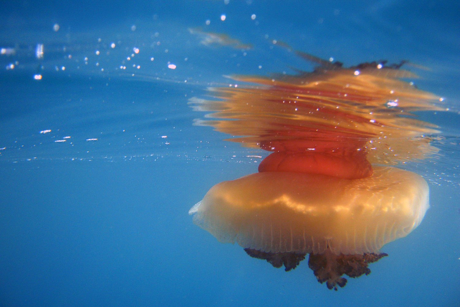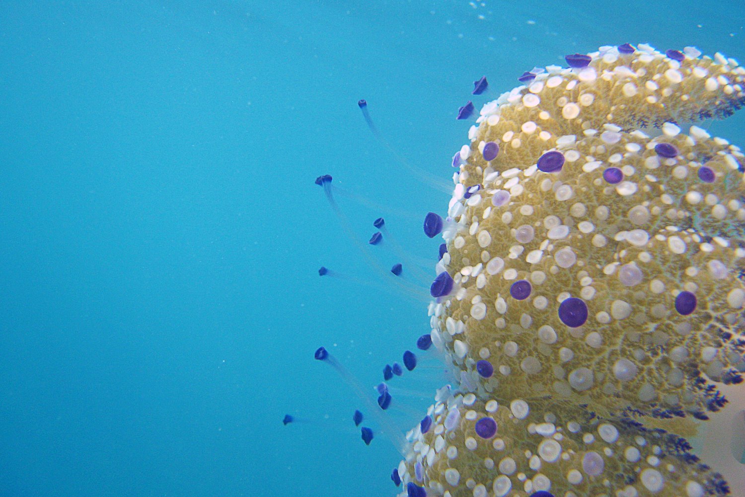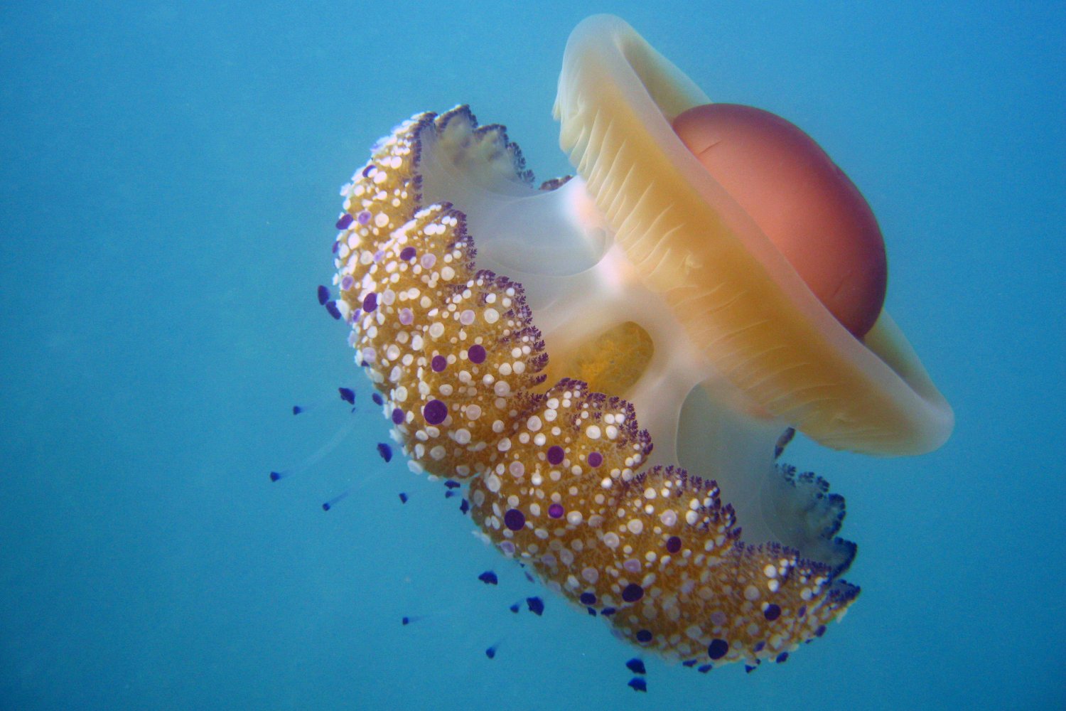 Οι μέδουσες ανήκουν στο είδος Cotylorhiza tuberculata, γνωστό ως μέδουσα-αυγό τηγανητό. Πρόκειται για είδος της Μεσογείου, που χαρακτηρίζεται από τον μεγάλο, κυκλικό δίσκο και τις σφαιρικές προεκτάσεις με συμβιωτικά φύκη του γένους Symbiodinium. Αυτά τα φύκη επιτρέπουν στη μέδουσα να αξιοποιεί την ηλιακή ενέργεια, γεγονός που μειώνει την ανάγκη της για θήρα άλλων οργανισμών.