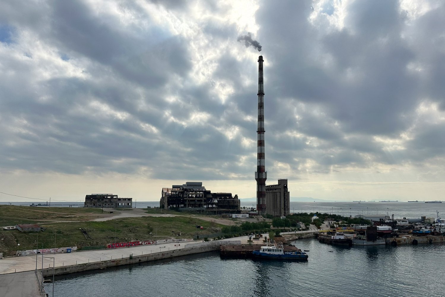 Κέλυφος του παλιού εργοστασίου λιπασμάτων (Α.Ε.Ε.Χ.Π.Λ.), που λειτούργησε από το 1909 έως το 1999. Δίπλα του υψώνεται η καμινάδα, ύψους περίπου 70 μέτρων, το πιο αναγνωρίσιμο βιομηχανικό στοιχείο του Πειραιά. Γύρω από τα ερείπια διακρίνονται τμήματα από αποθήκες, μεταλλικές κατασκευές και το μικρό λιμανάκι των Λιπασμάτων, που σήμερα χρησιμοποιείται για σκάφη και βοηθητικά πλοία.