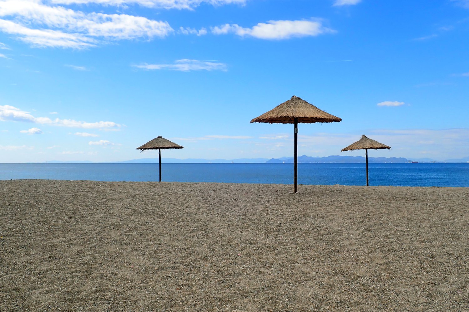 Οι ομπρέλες στη παραλία το Φθινόπωρο, Γλυφάδα, Αττική