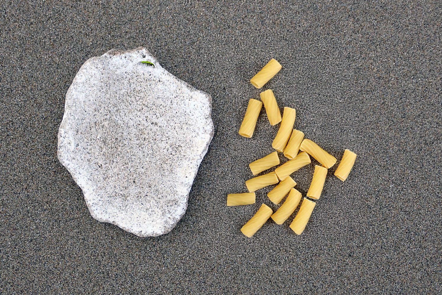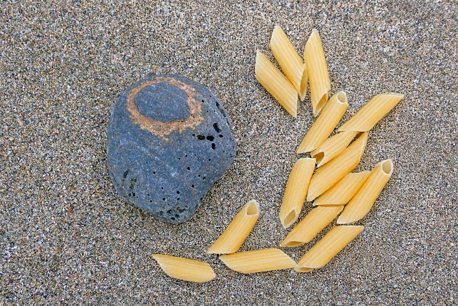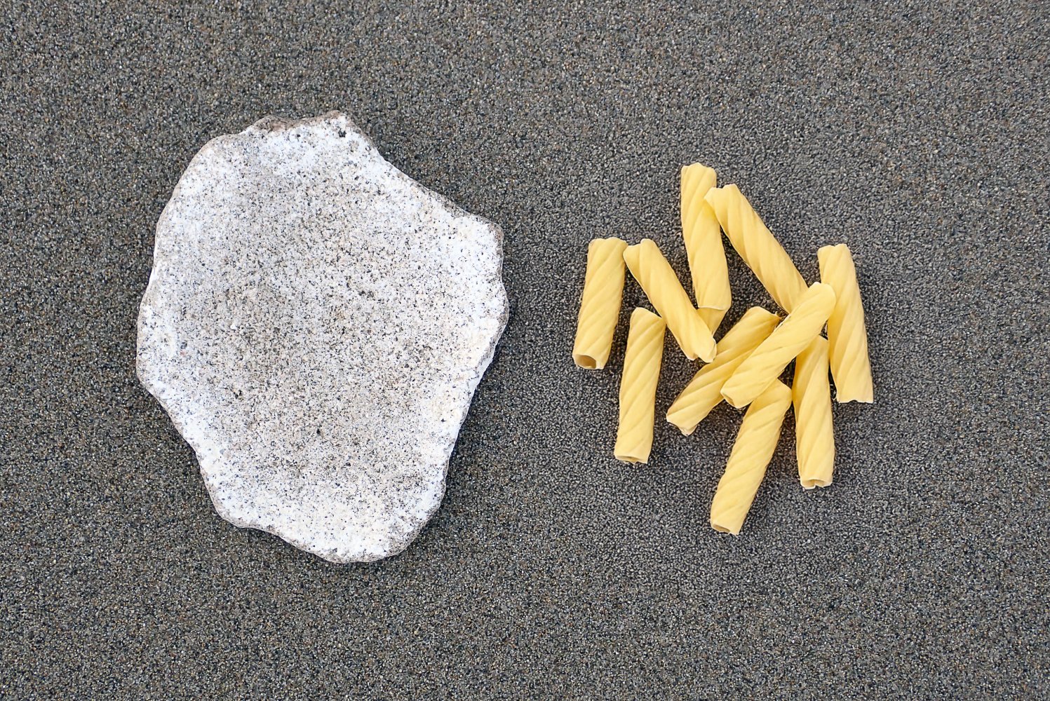 Η καθαρότητα του χώρου, όπως εκφράζεται σε αυτές τις φωτογραφίες με την βρεγμένη άμμο, ενός βότσαλου ή ενός κομματιού ξύλου, αναδεικνύει με φυσικό τρόπο προϊόντα τροφής, όπως τα ζυμαρικά. Το λιτό αυτό περιβάλλον αναδεικνύει την υφή, το χρώμα και τη μορφή των προϊόντων χωρίς περιττά στοιχεία.