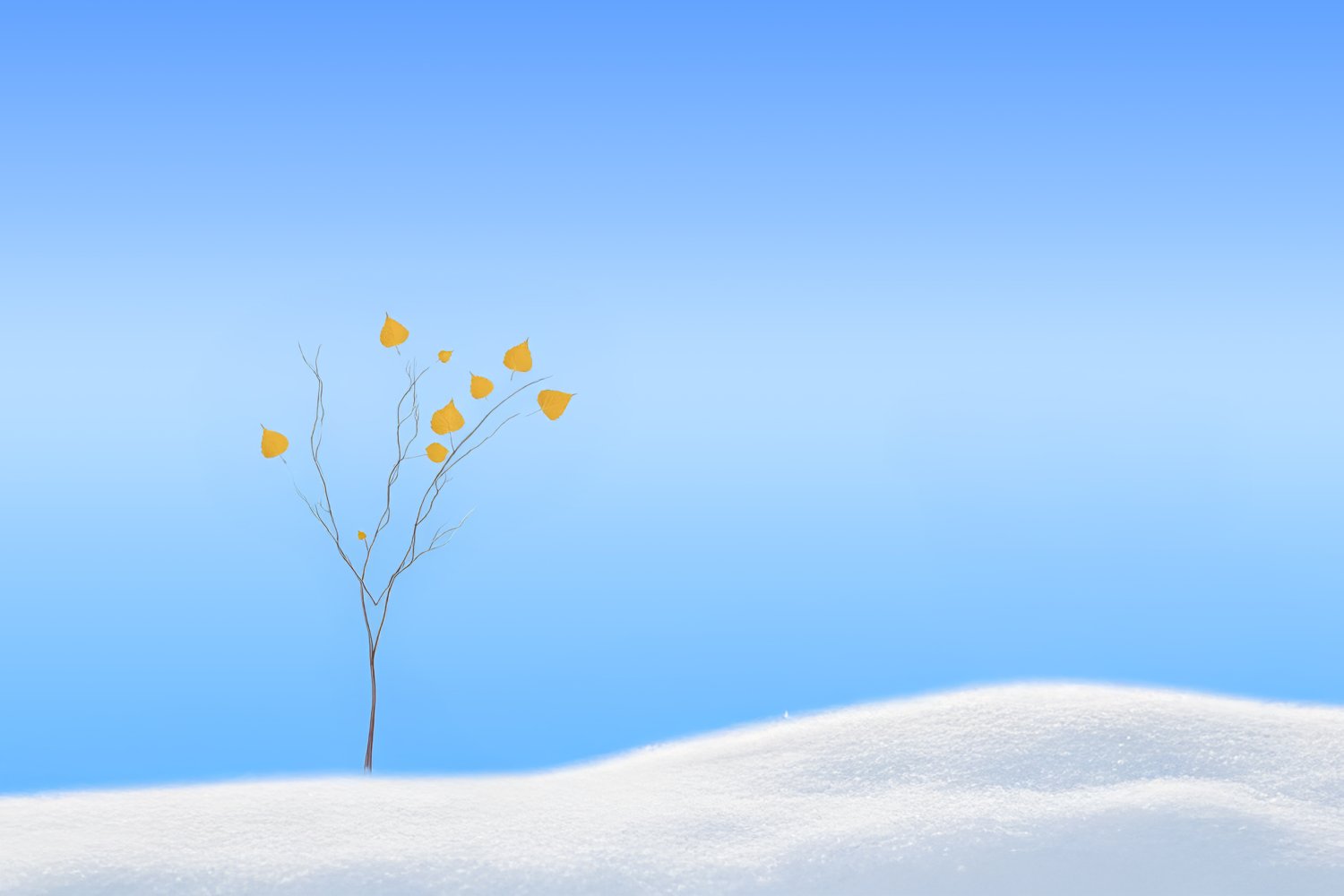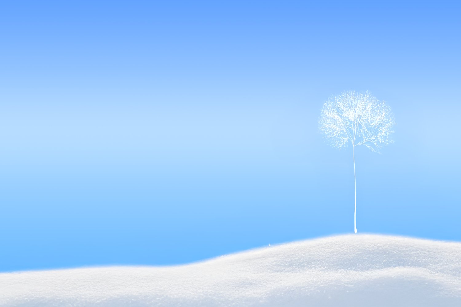 Το γαλάζιο και το άσπρο συγκροτούν έναν χώρο ήσυχο και ανοιχτό, χωρίς ένταση και χωρίς συσσώρευση. Μέσα σε αυτόν, το δέντρο στέκεται ως κάτι πραγματικό, με κορμό, με κατεύθυνση, με ίχνη ζωής. Η χαρά γεννιέται από την αναγνώριση της παρουσίας του, από το απλό γεγονός ότι κάτι ζει και φαίνεται.