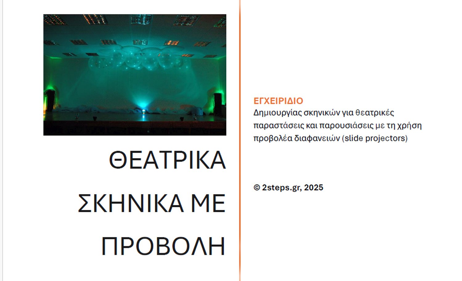 Το εγχειρίδιο στηρίζεται στην εμπειρία που αποκτήθηκε κατά τις ετήσιες γιορτές σχολείων, οι οποίες πραγματοποιήθηκαν σε εξωτερικό ή εσωτερικό χώρο με τη χρήση slide projector για τη δημιουργία θεατρικών σκηνικών. Έτσι, όλες οι τεχνικές και μέθοδοι που περιγράφονται δοκιμάστηκαν και εφαρμόστηκαν σε πραγματικές συνθήκες.