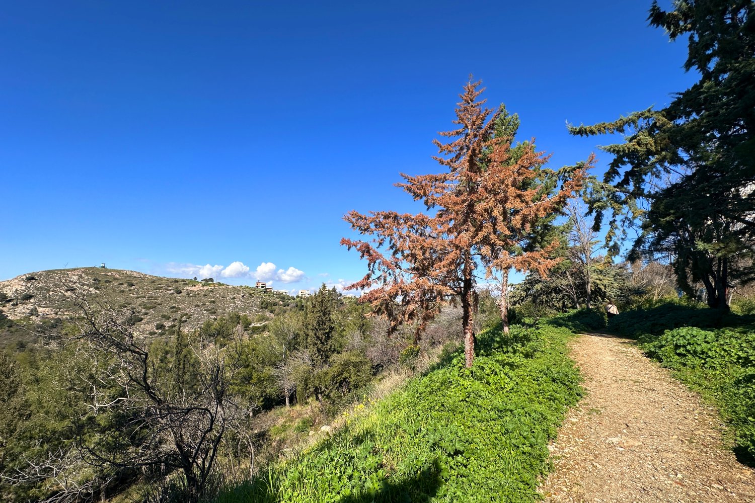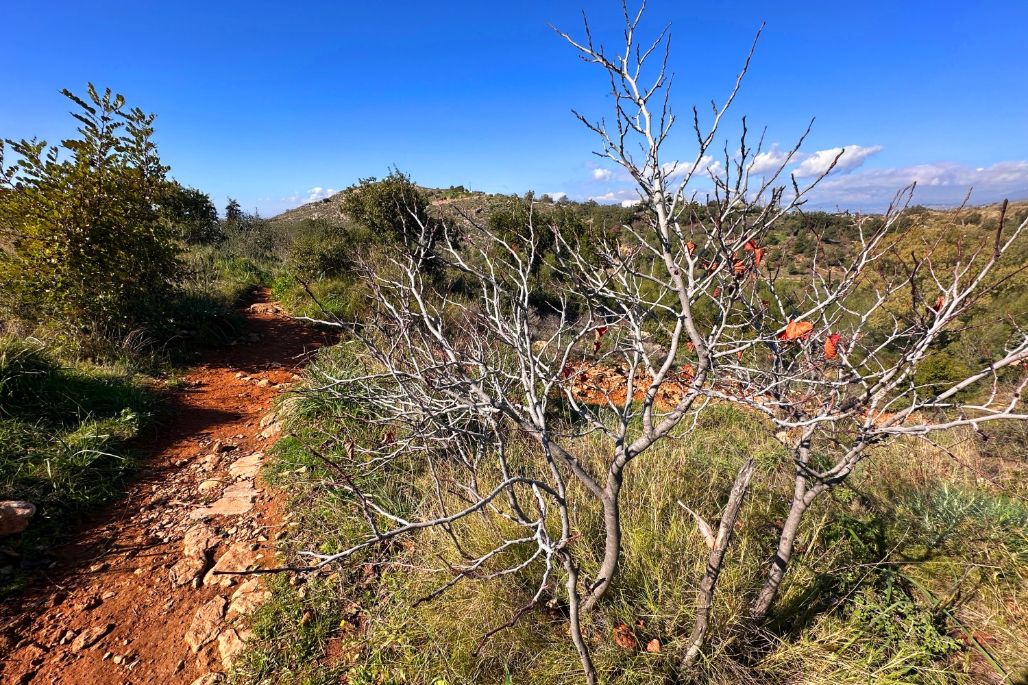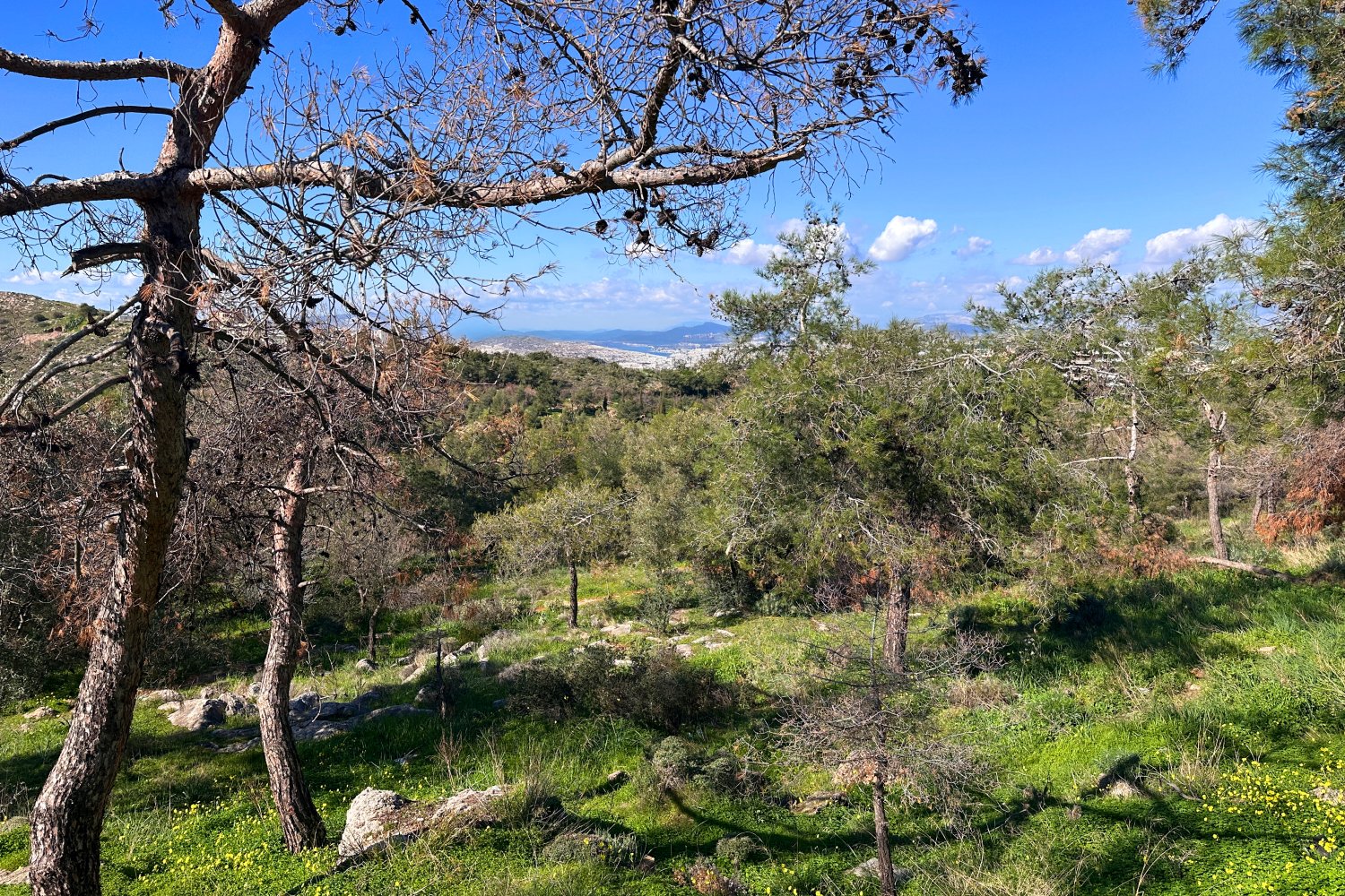 Το τοπίο αποτυπώνει μια μεταβατική φάση, όπου το τέλος του χειμώνα συνυπάρχει με τα πρώτα σαφή σημάδια της άνοιξης.