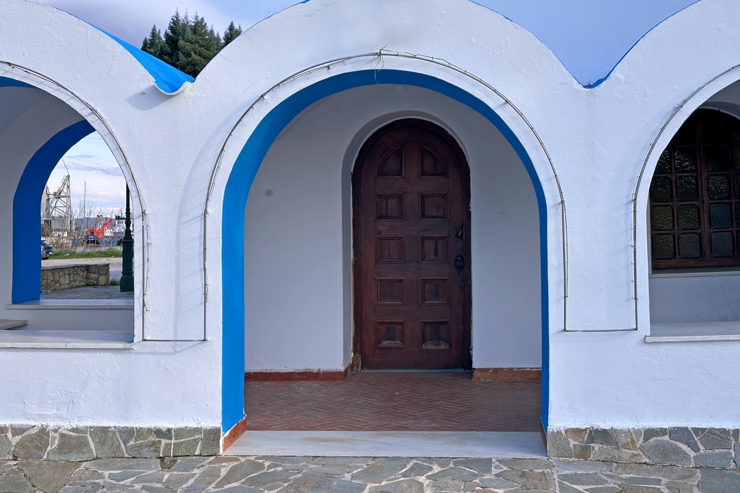 Το εκκλησάκι του Αγίου Νικολάου είναι μικρό, γραφικό και έχει ενταχθεί στην τοπική εικόνα του τόπου αφού βρίσκεται λίγο πριν τη βυθιζόμενη γέφυρα πάνω στον δρόμο που περνά από τα Ισθμία προς τη Διώρυγα, σε κοντινή απόσταση από το κύριο λιμάνι της περιοχής.