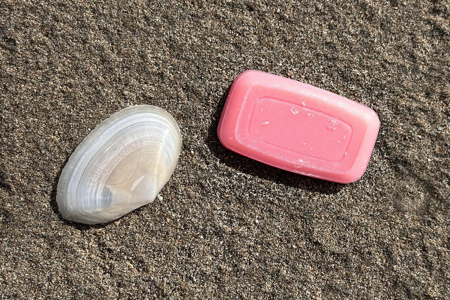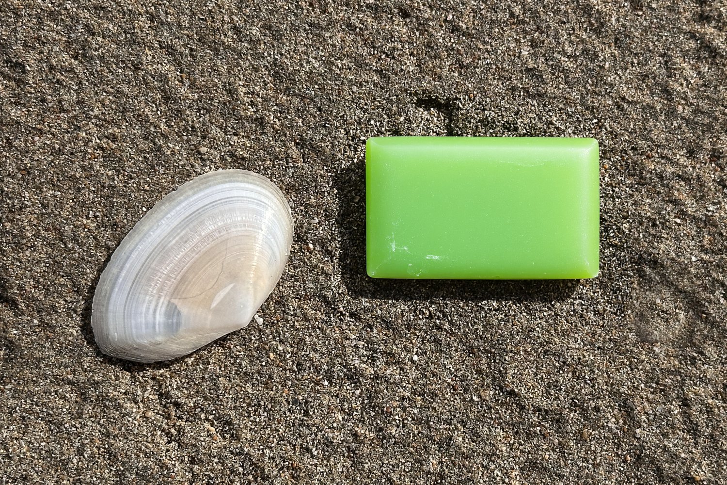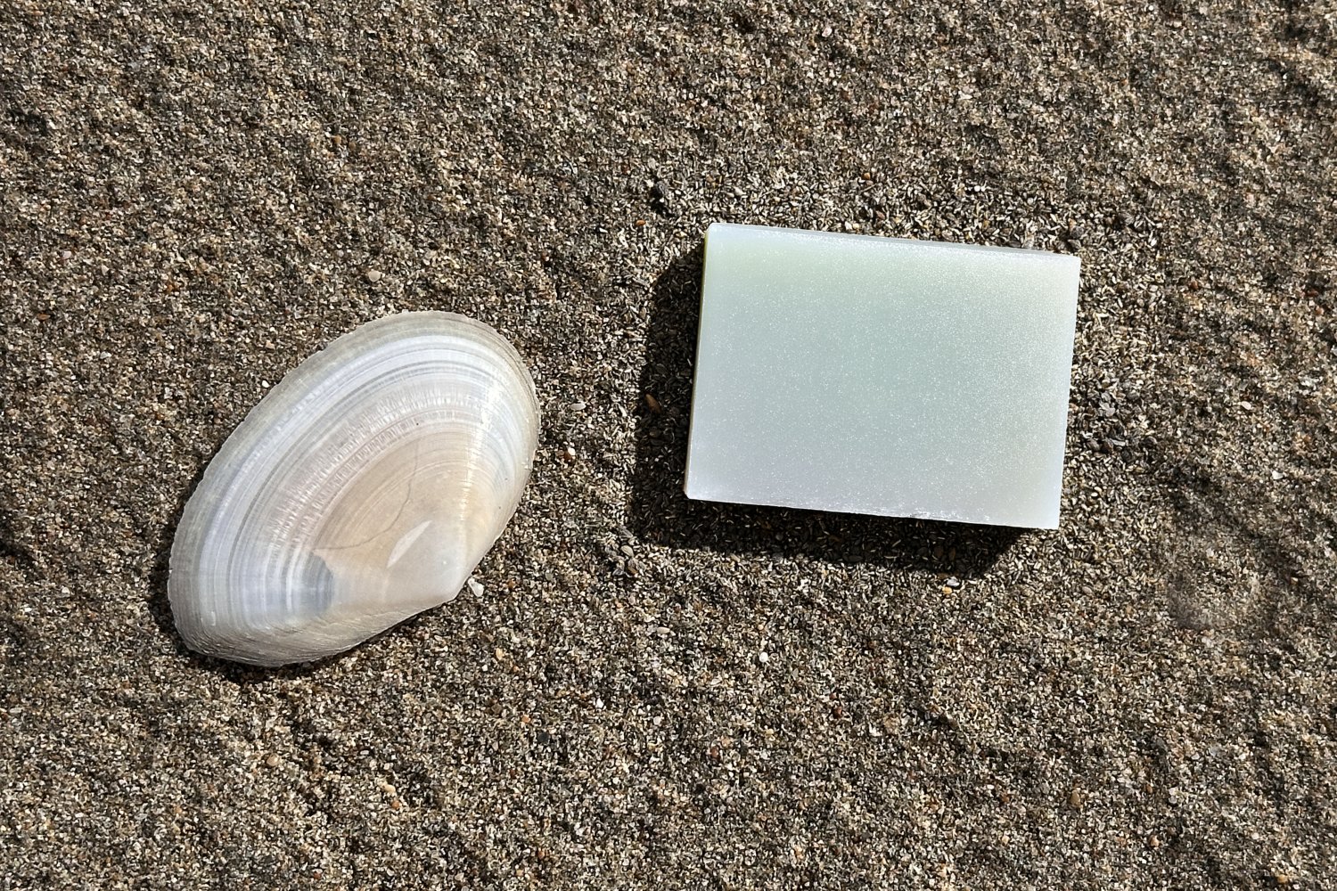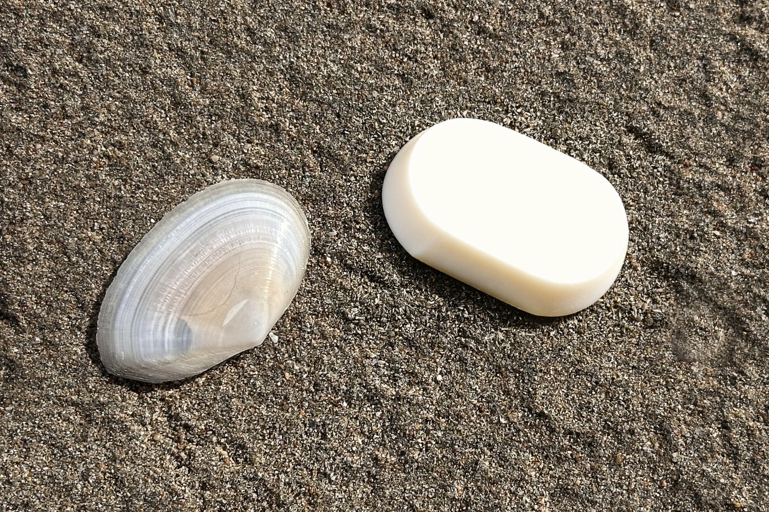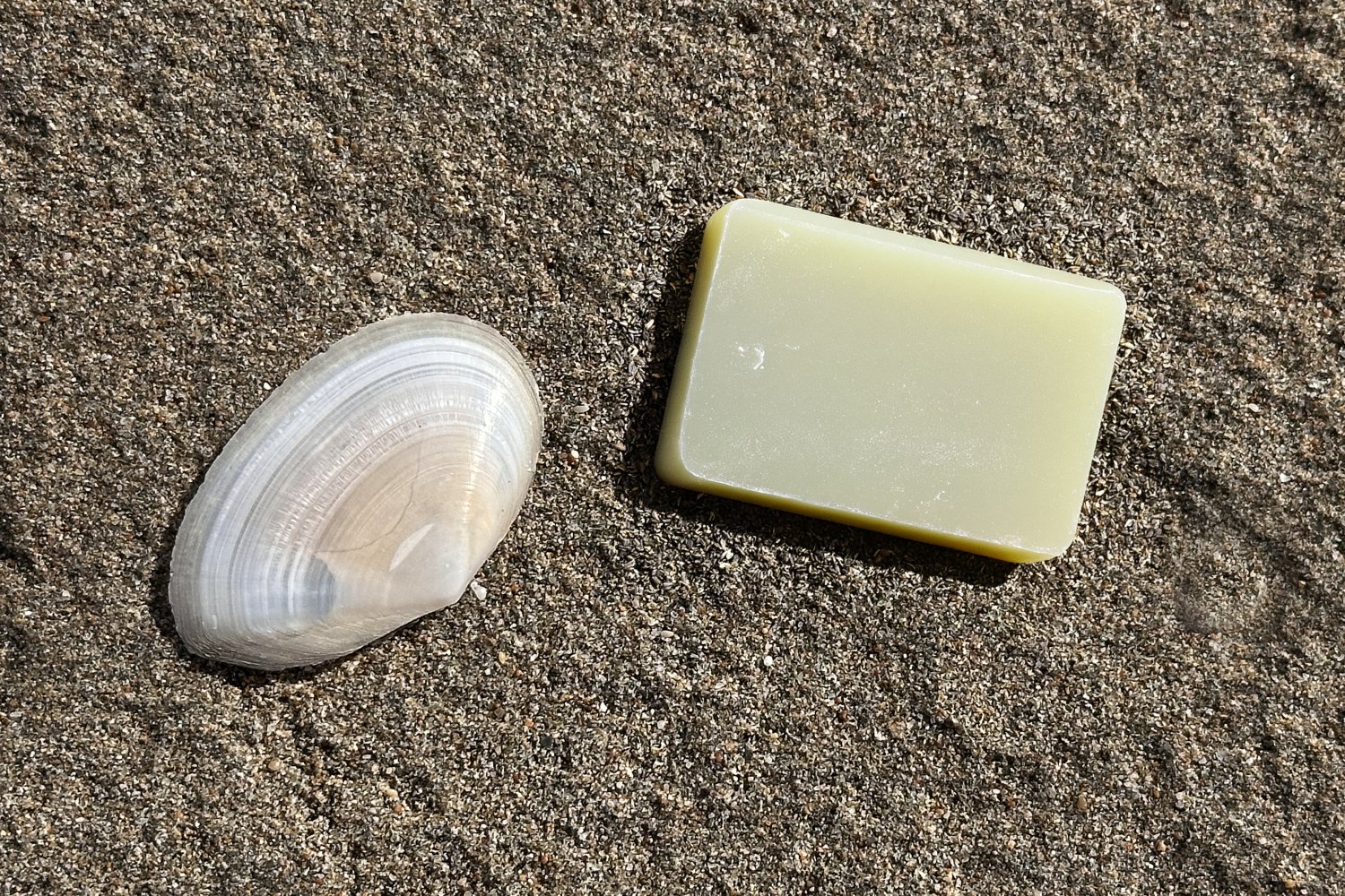 Η σειρά των φωτογραφιών βασίζεται σε μια απλή επιλογή: το φόντο παραμένει σταθερό και το προϊόν αλλάζει. Η άμμος της παραλίας και το λευκό όστρακο λειτουργούν ως φυσικό σκηνικό χωρίς τεχνητές παρεμβάσεις, προβάλλοντας την καθαρότητα, το αλάτι και τη σχέση τους με τη σύσταση του σαπουνιού, το νερό και το δέρμα.