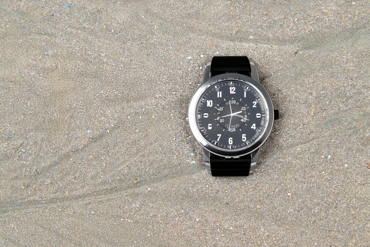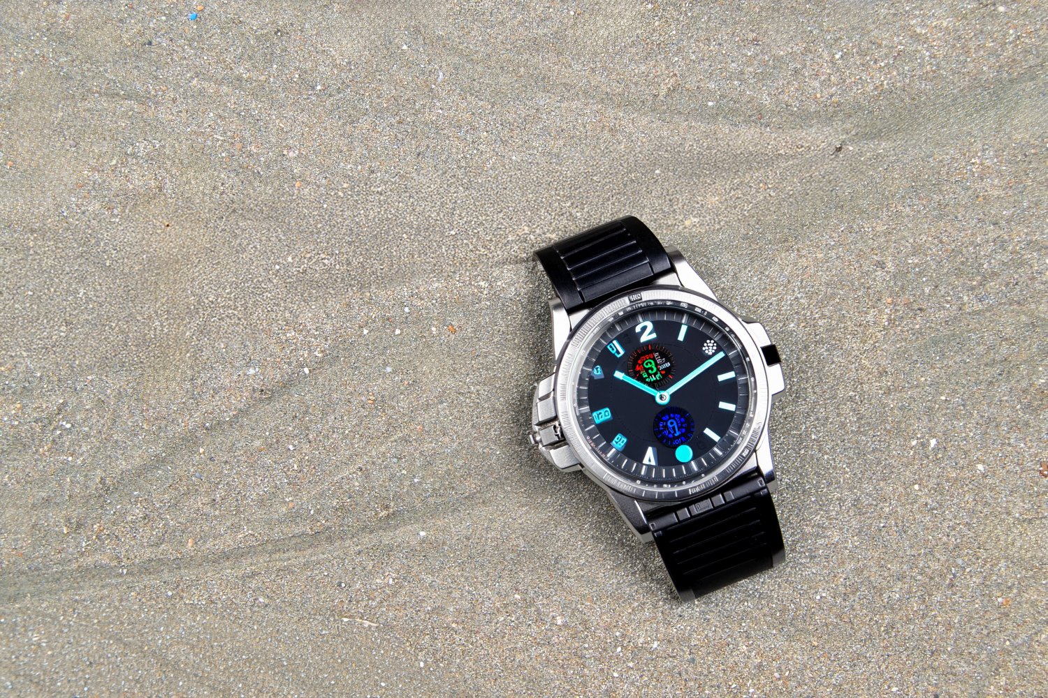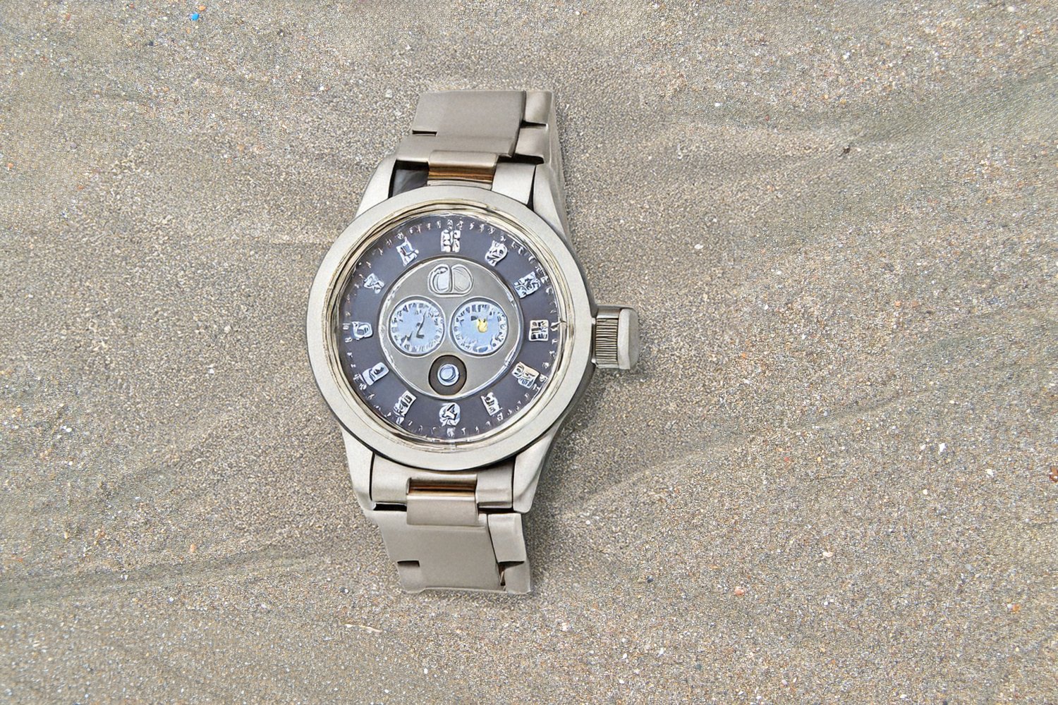 Η λήψη καταγράφει μόνο το περιβάλλον της άμμου. Το ρολόι προστίθεται αργότερα με τη βοήθεια της AI, επιτρέποντας στο ίδιο φόντο να φιλοξενεί διαφορετικά αντικείμενα και να μετατρέπεται σε ολοκληρωμένες διαφημιστικές εικόνες, έτοιμες για χρήση σε social media και καταλόγους.