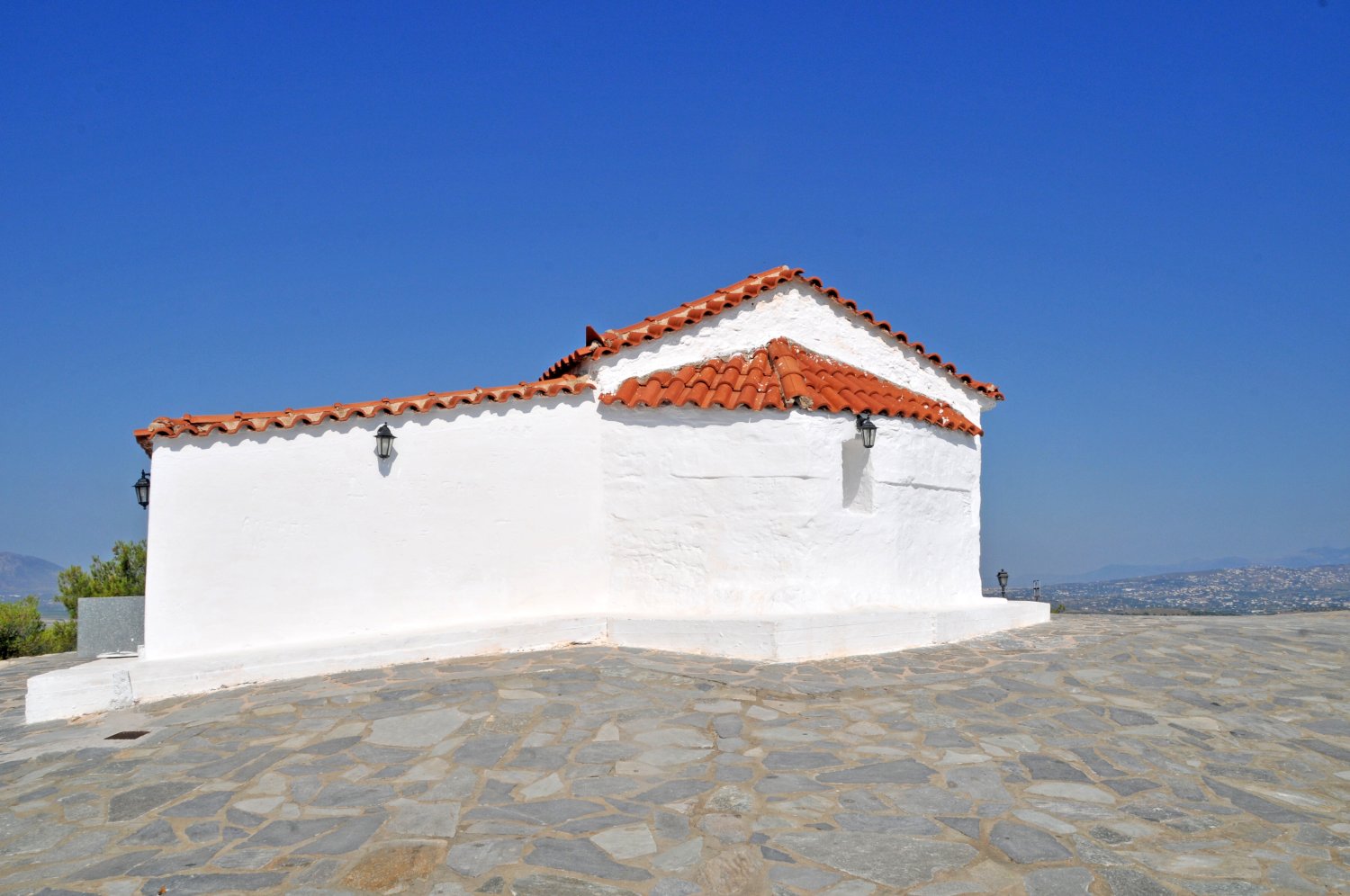 Αν και το εσωτερικό του είναι μικρό, έχει μια τεράστια πλακόστρωτη αυλή, που μπορεί να φιλοξενήσει πολύ κόσμο με άνεση.